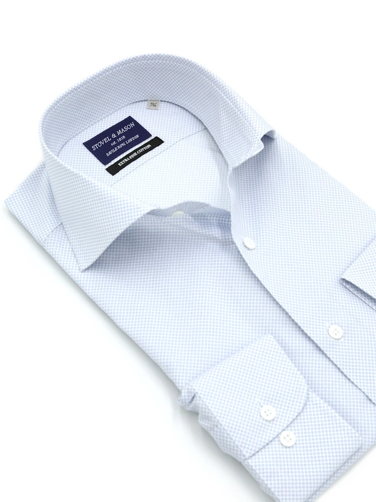 【綿100%】長袖ワイシャツレギュラープリント柄サックスS&MBLUELABEL通年