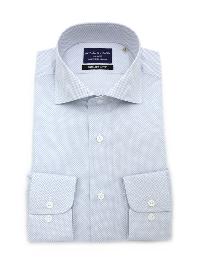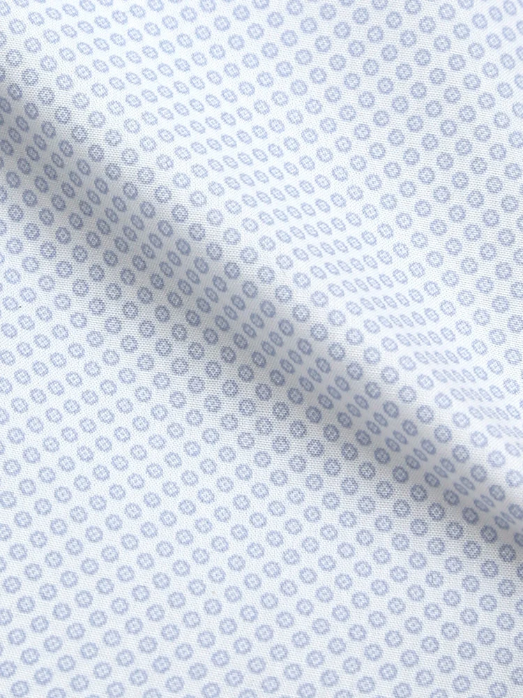 【100CottonJersey】長袖ワイシャツセミワイドプリント柄小紋サックス綿100%リッケンバッカー通年