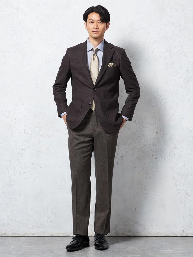 ビジネスはもちろん、チーフやネクタイで華やぎを添えればパーティにも対応します。