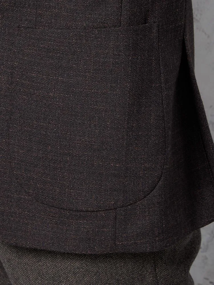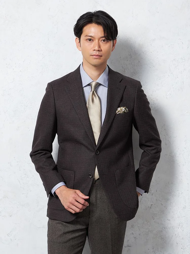 イタリア製ツイード生地で仕立てた2つボタンシングルジャケット。