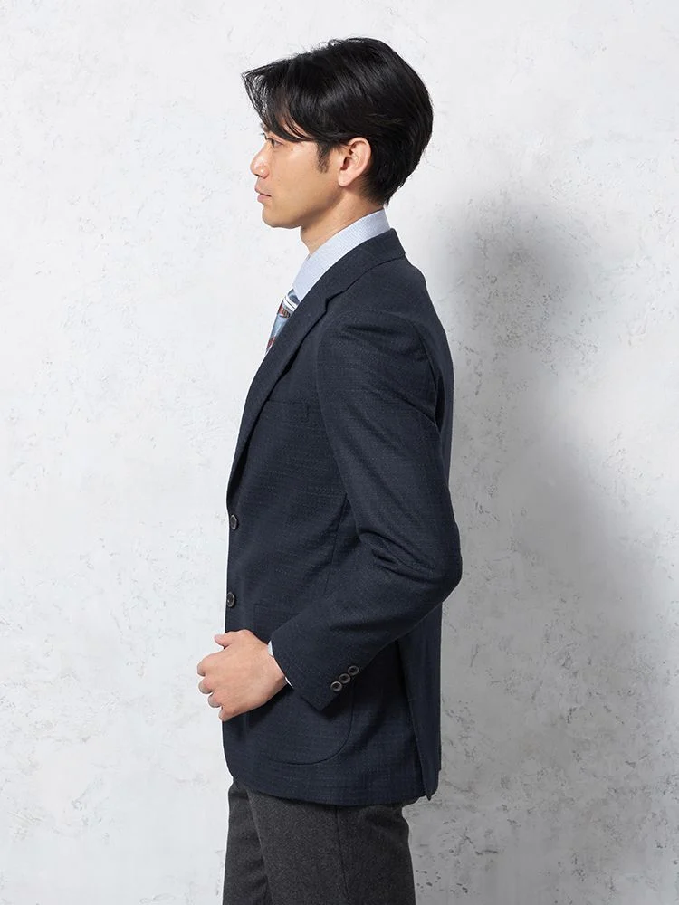 切り込みが2本のサイドベンツ仕様のアイテムです。クラシックでエレガントな印象を与えます。