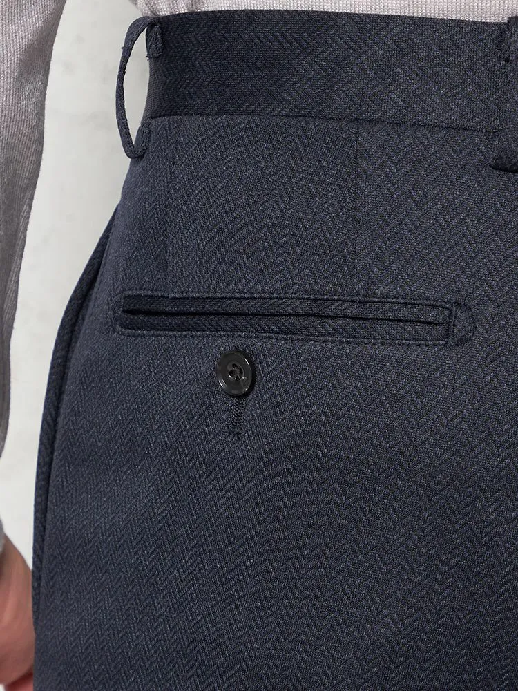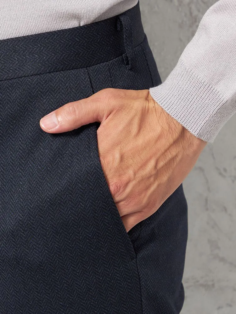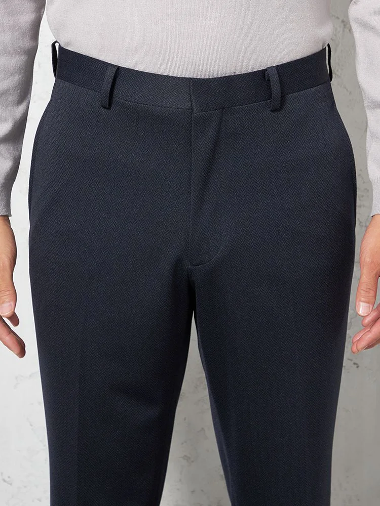 【ウォッシャブル】パンツ ノータック【i-Pants-アイパンツ-】全方向ストレッチ ヘリンボン リッケンバッカー 秋冬(ネイビー)