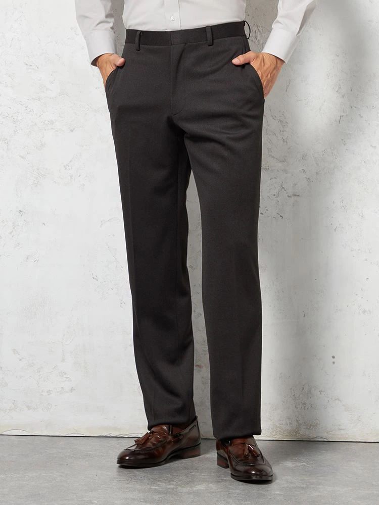 パンツの腰回りに生地の折り込みがなく、スッキリとしたシルエットを実現します。シンプルで洗練された印象を与え、すっきりとした着こなしが可能です。