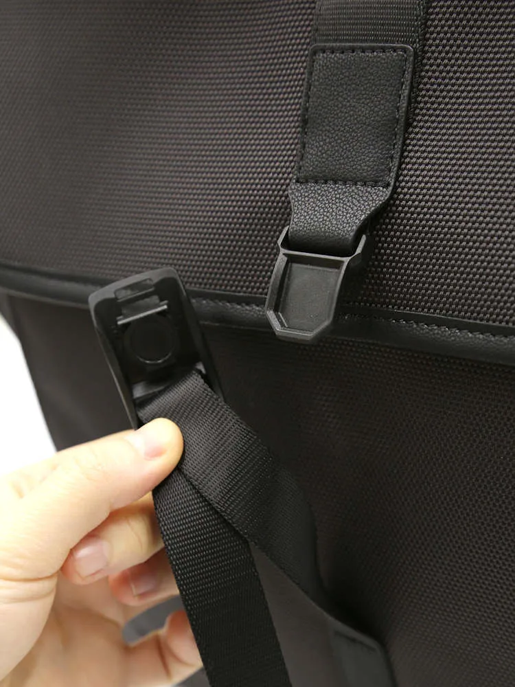 正面ポケットはマグネットバックルでの開閉のため、片手が塞がっていても簡単に開閉できます。