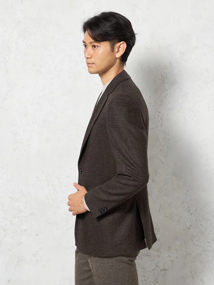 【尾州ニット生地】ジャケット2つボタン国産素材ストレッチ小柄ブラウンリッケンバッカー秋冬