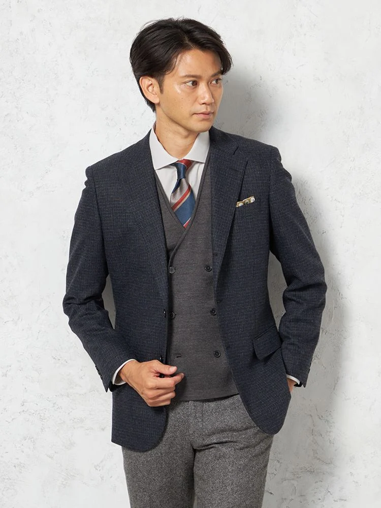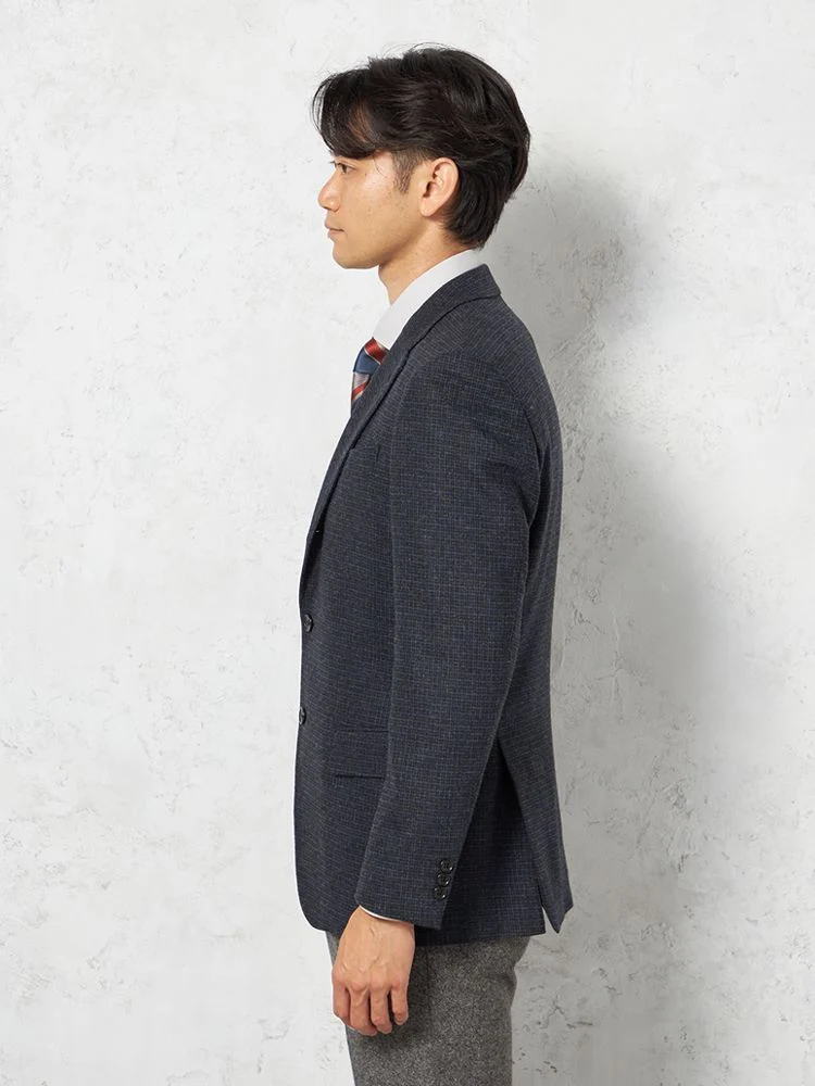 【尾州ニット生地】ジャケット2つボタン国産素材ストレッチ小柄ネイビーリッケンバッカー秋冬