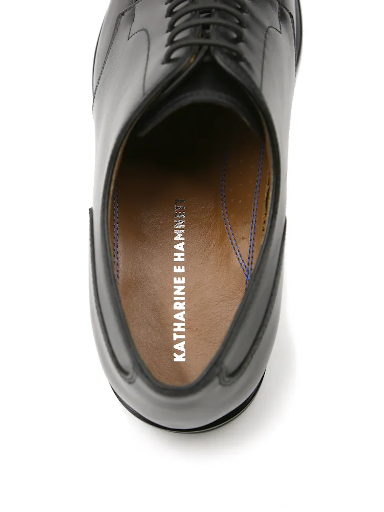 【KATHARINE E HAMNETT-キャサリン・イー・ハムネット-】シューズ Uモカ 本革 靴紐付き 無地 通年(ブラック)