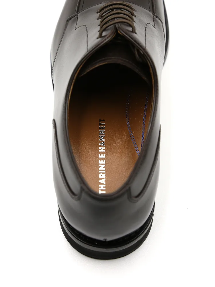 ビジネスシーンのみならずドレスダウンカジュアルとしても最適な【KATHARINE E HAMNETT-キャサリン・イー・ハムネット-】のUモカ革靴。