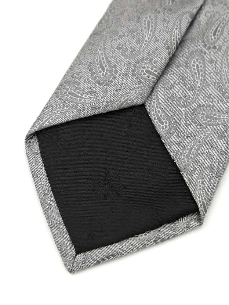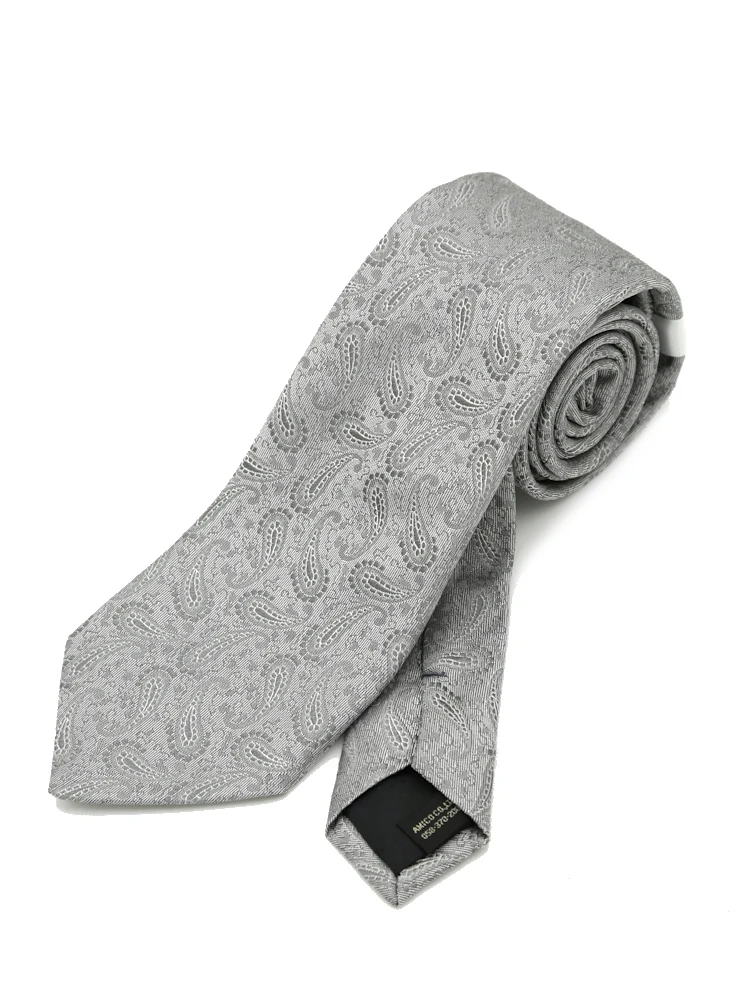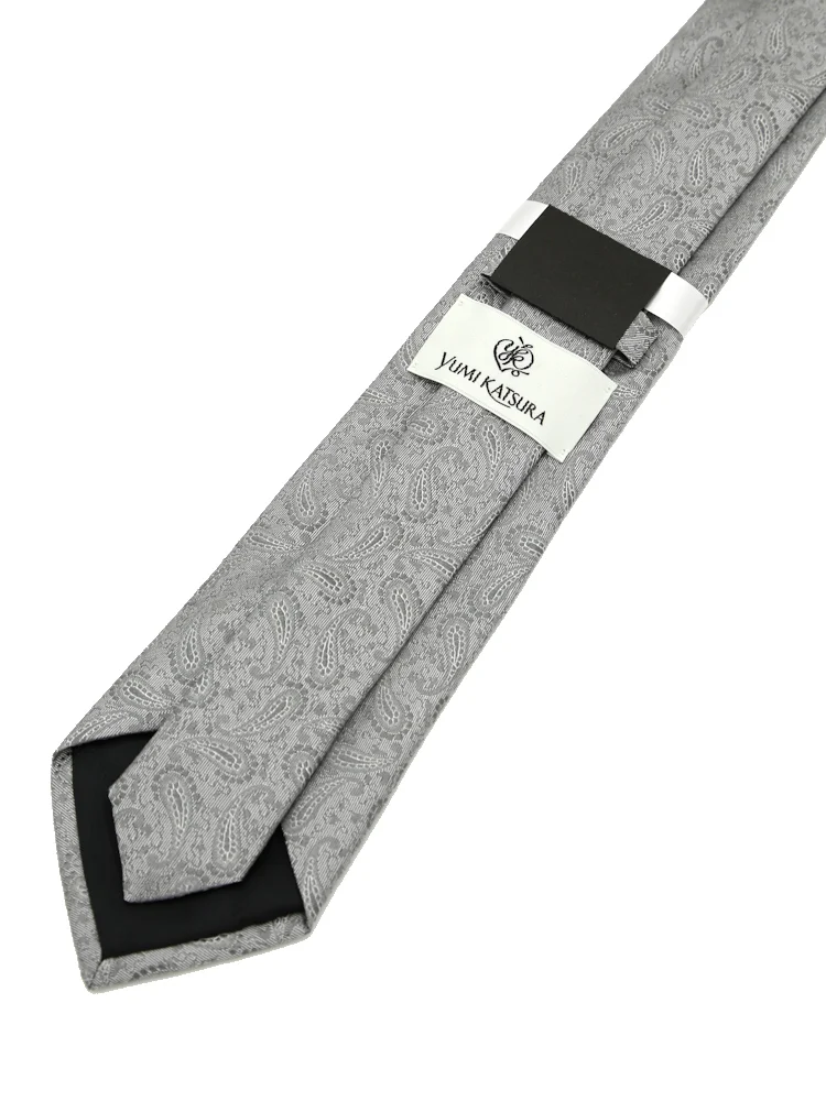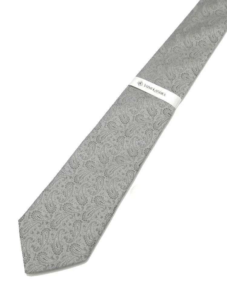 【シルク100%】ネクタイ レギュラー ブライダルテイスト ペイズリー ユミカツラ 通年(L.グレー)