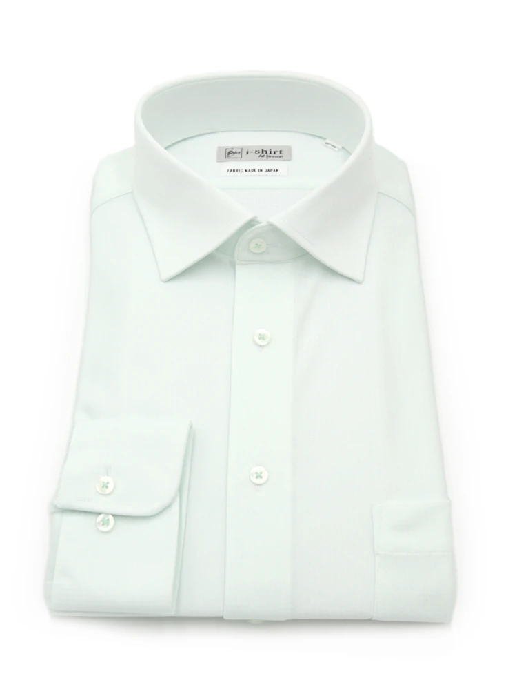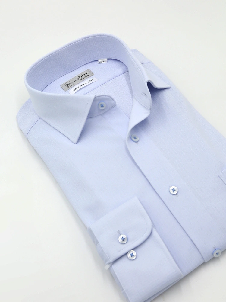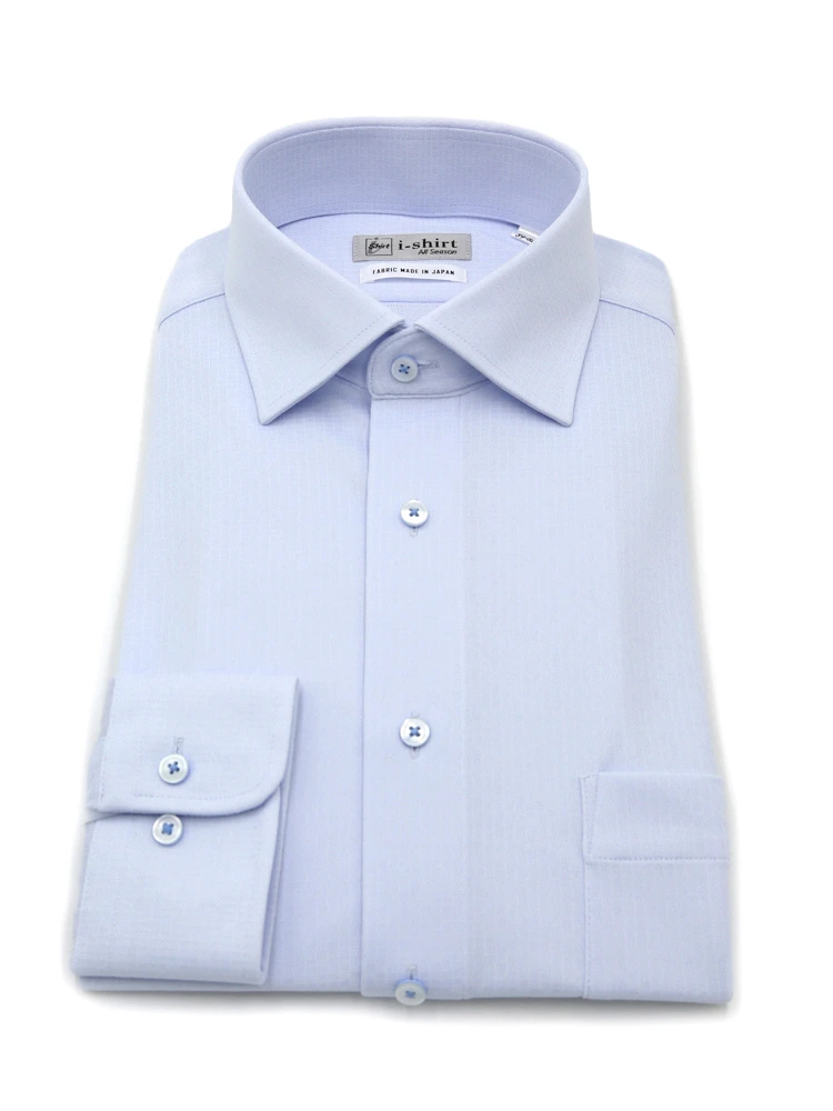 【完全ノーアイロン】長袖 アイシャツ セミワイド ストレッチ 防汚加工 織柄無地 ワイシャツ i-shirt 通年(サックス)