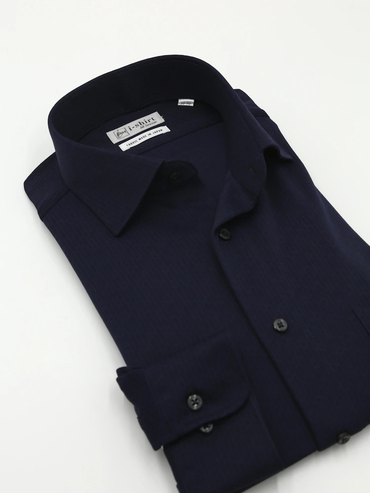【完全ノーアイロン】長袖アイシャツセミワイド吸水速乾ストレッチツイル織柄無地ワイシャツi-shirt通年