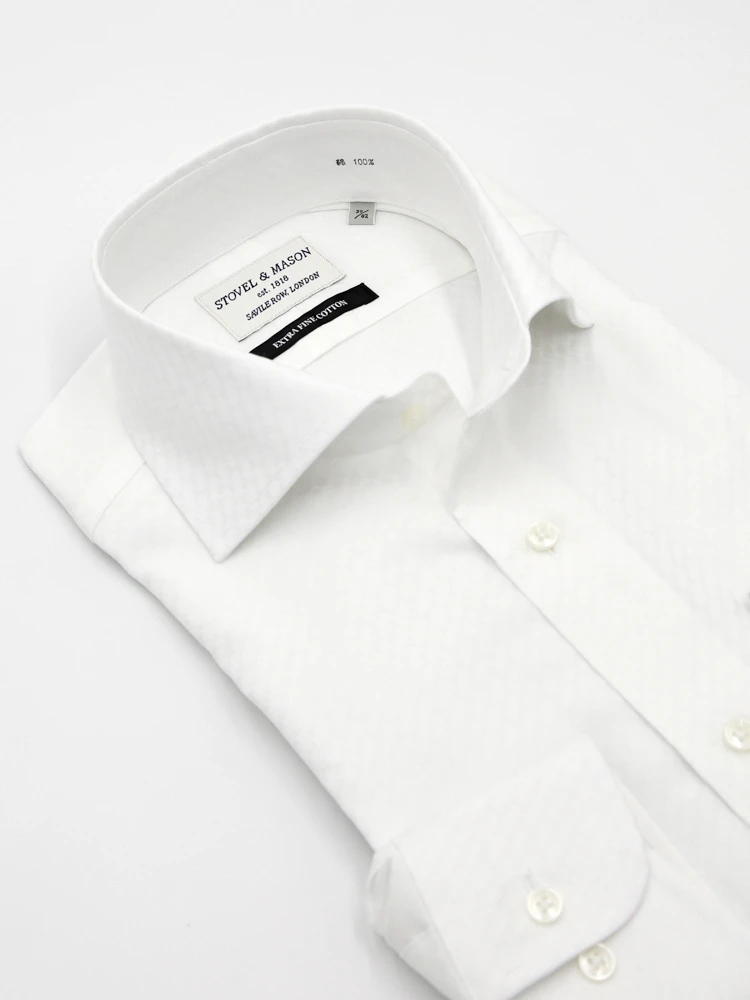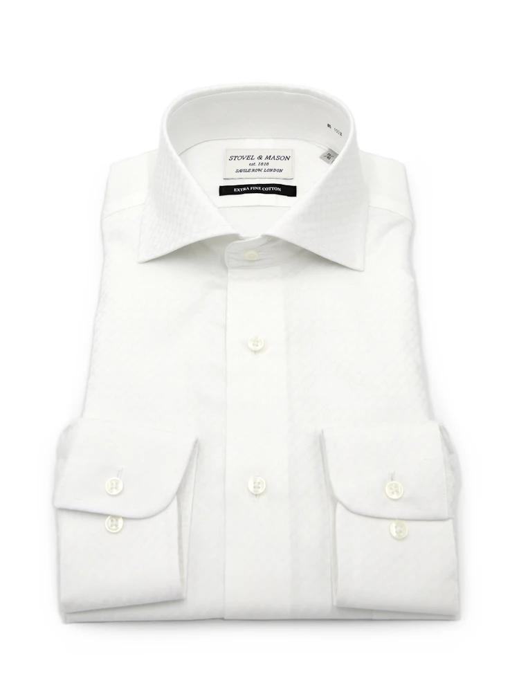 【綿100%】長袖 ワイシャツ ワイドカラー 織柄無地 STOVEL&MASON 通年