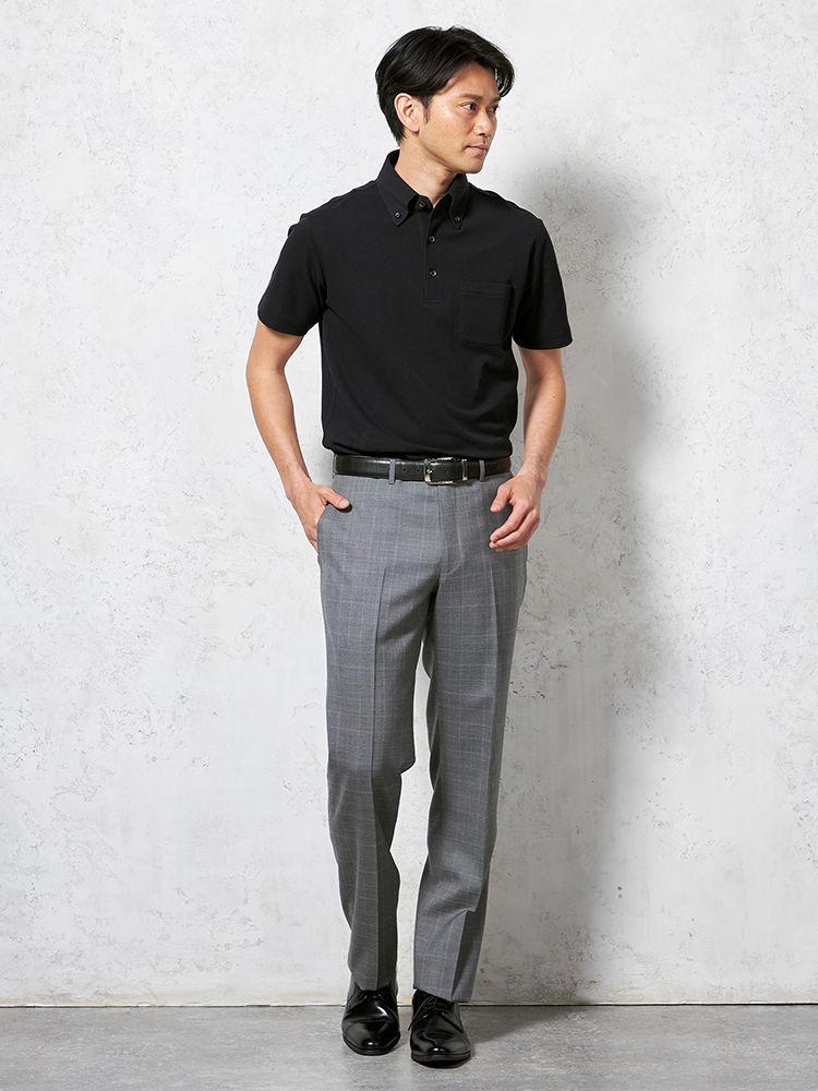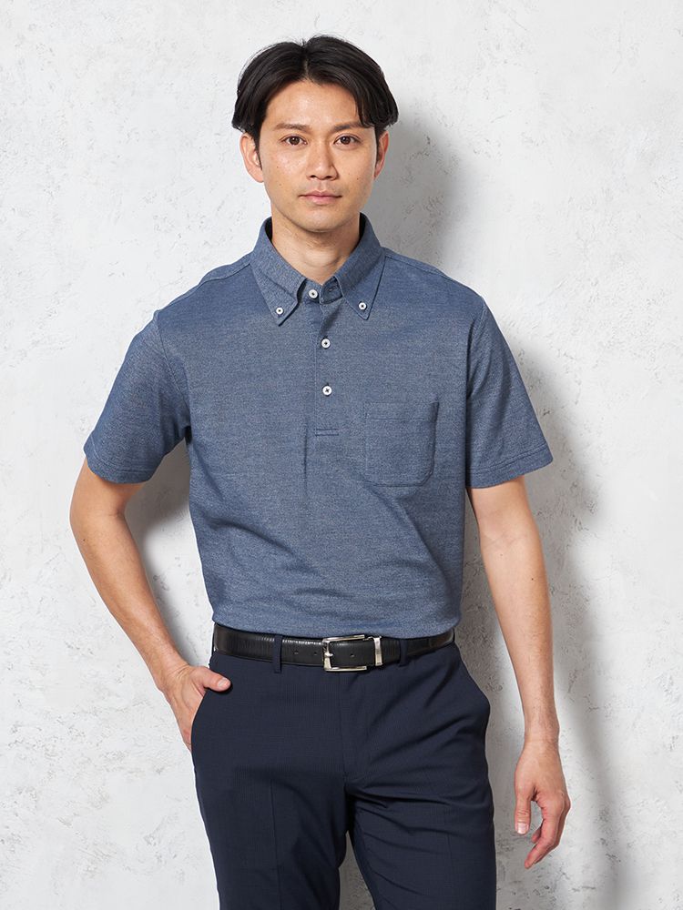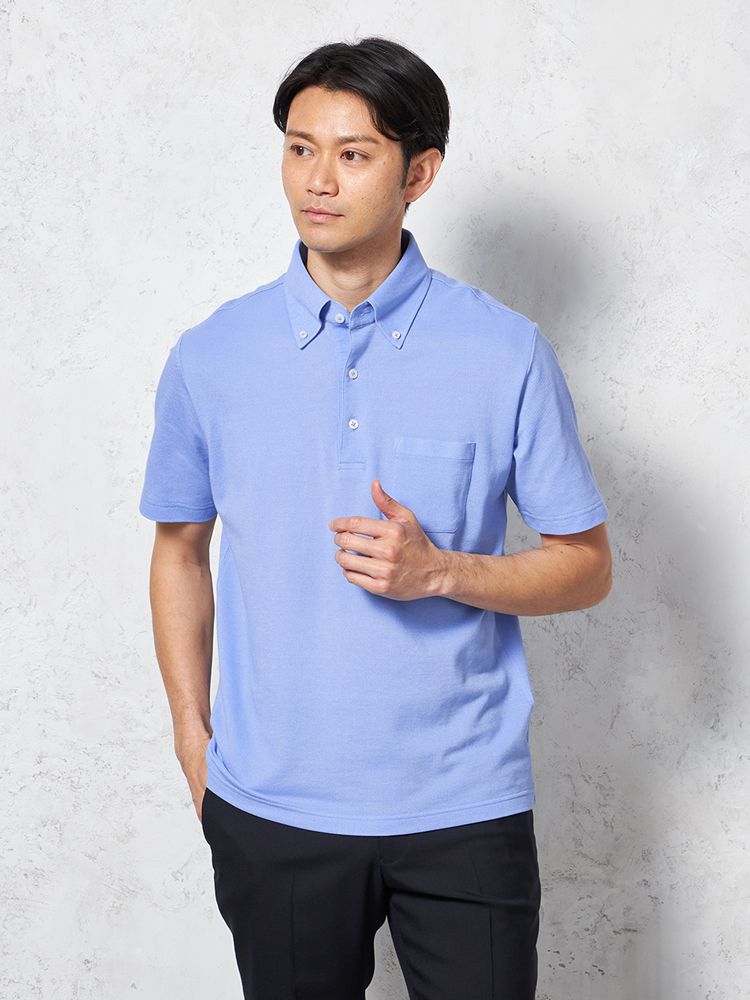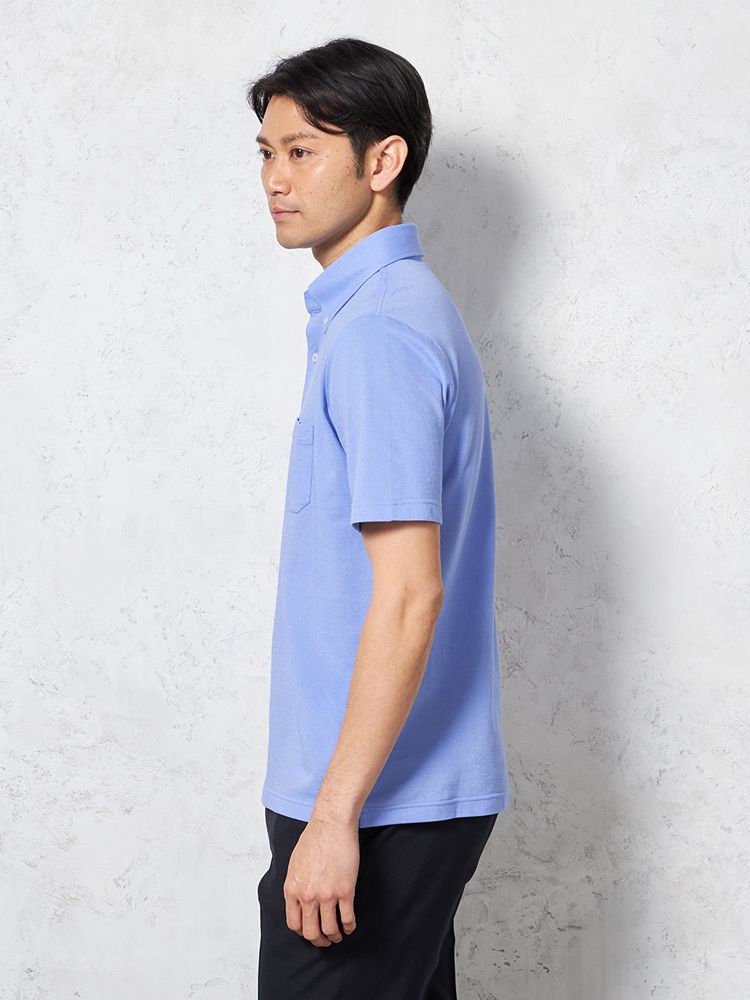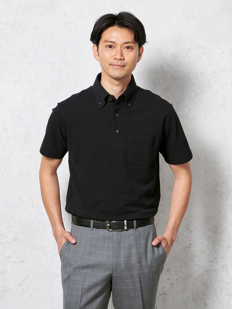 • ブラック 【綿麻ポリエステル素材】半袖 ポロシャツ ボタンダウン ドライタッチ カジュアルインナー 無地 春夏 1311702943