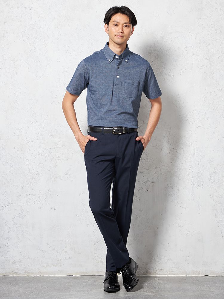 汗ばむ季節にぴったりの、心地よい綿麻混素材を用いたポロシャツです。