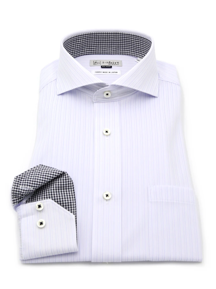 • ホワイト 【完全ノーアイロン】長袖 アイシャツ カッタウェイ【スリム】ストレッチ オルタネイトストライプ ワイシャツ i-shirt 通年 1375816314