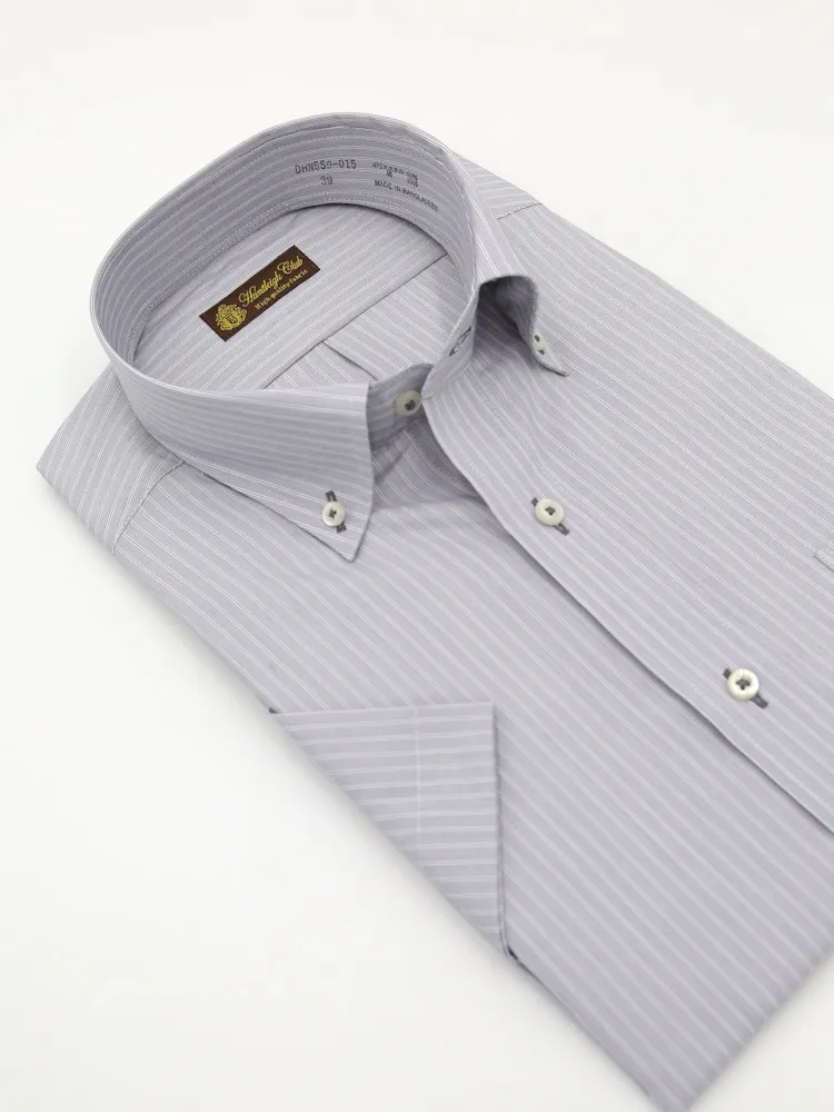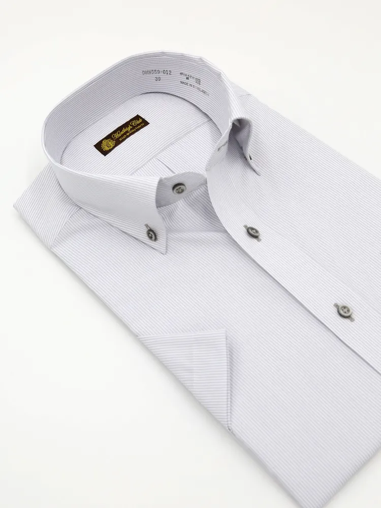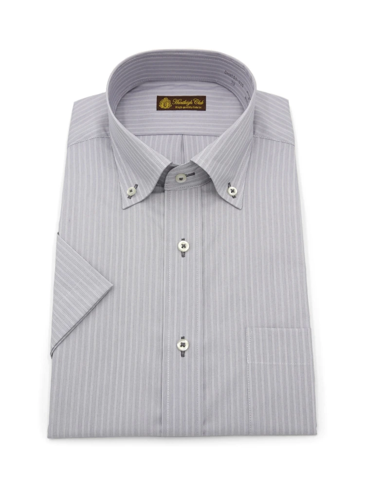 【形態安定】半袖 ワイシャツ ボタンダウン ストライプ ハントレークラブ 春夏(M.グレー)