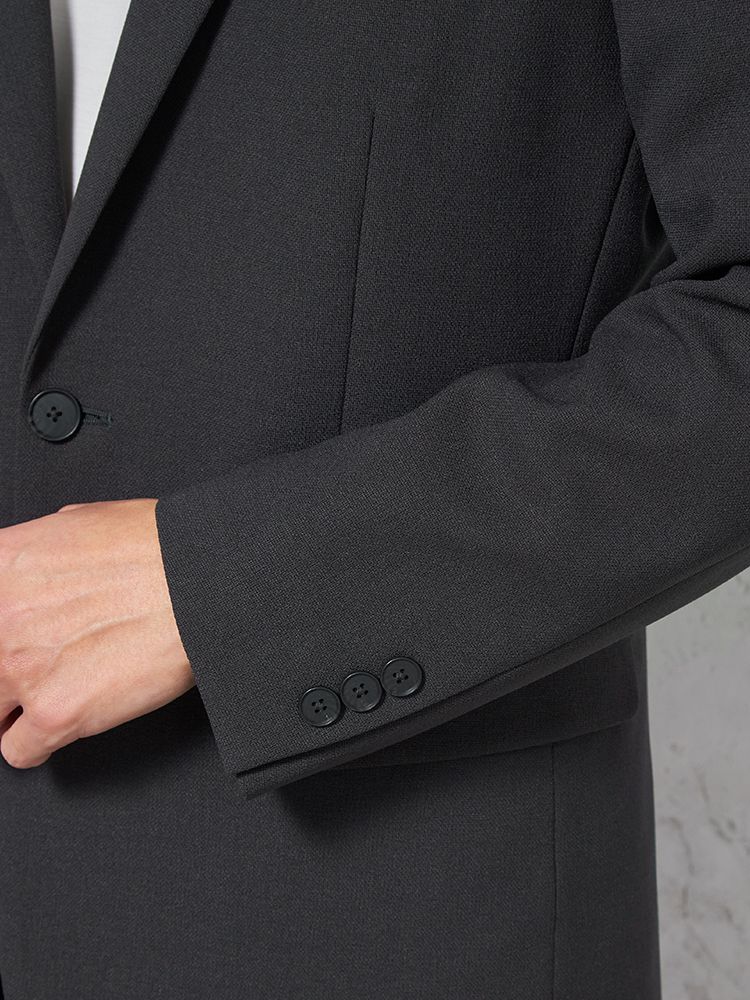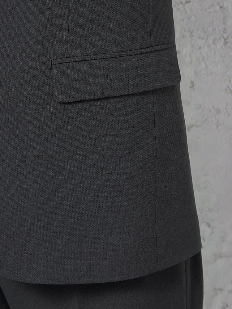 切り込みが1本のセンターベントデザインです。細身でスッキリとしたシルエットが特徴で、快適な着心地を提供します