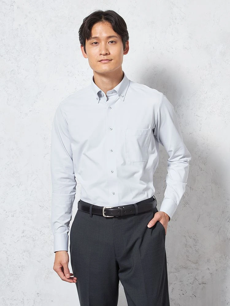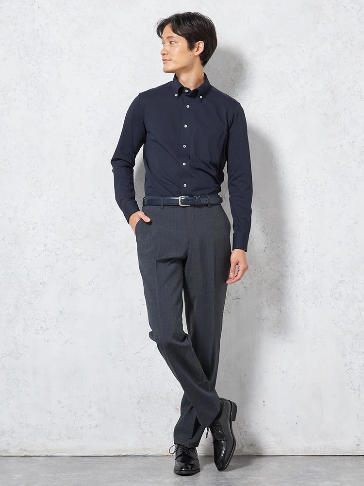 • ネイビー 【KATHARINE E HAMNETT-キャサリン・E・ハムネット-】長袖 ワイシャツ ボタンダウン 360°ストレッチ 吸水速乾 無地 通年 1270408911