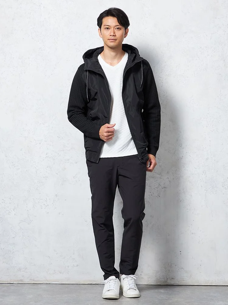 スポーティ感のあるアイテムをブラックの色味で大人の雰囲気にまとめています。