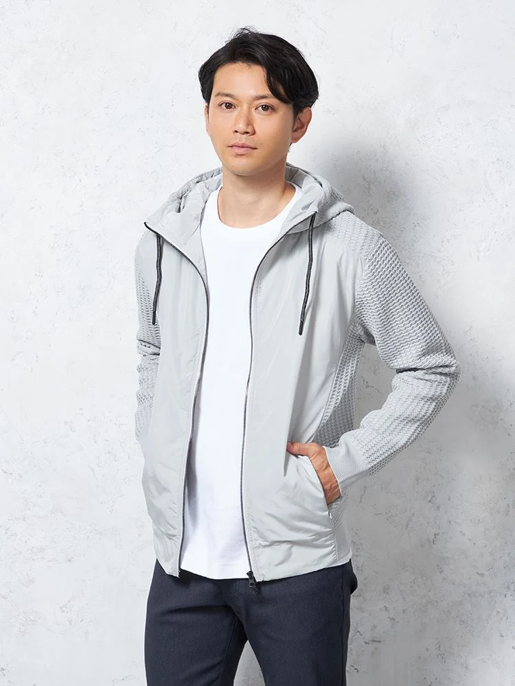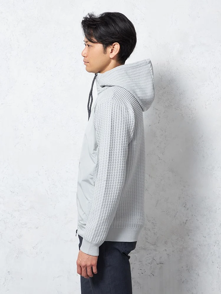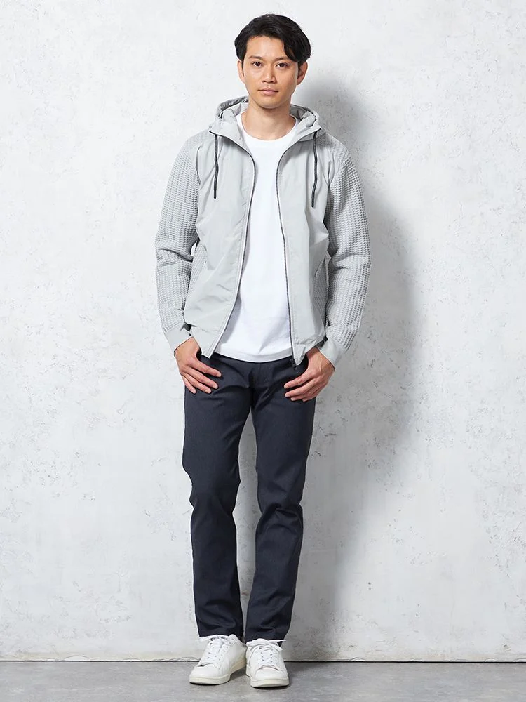 異素材を組み合わせてメリハリをさり気なく出したパーカーブルゾン。
