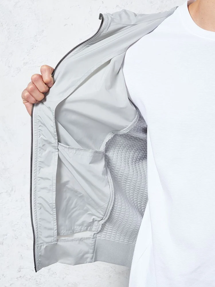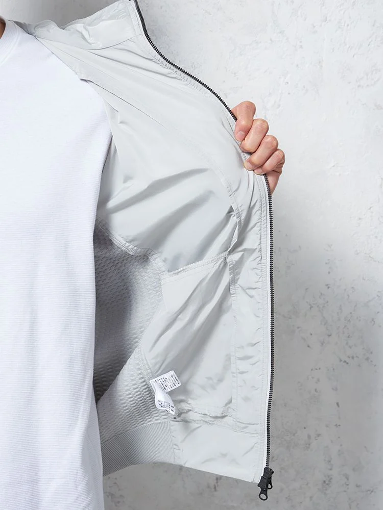フロントジップは開いてインナーを見せるのも、軽やかさが加わって素敵。
