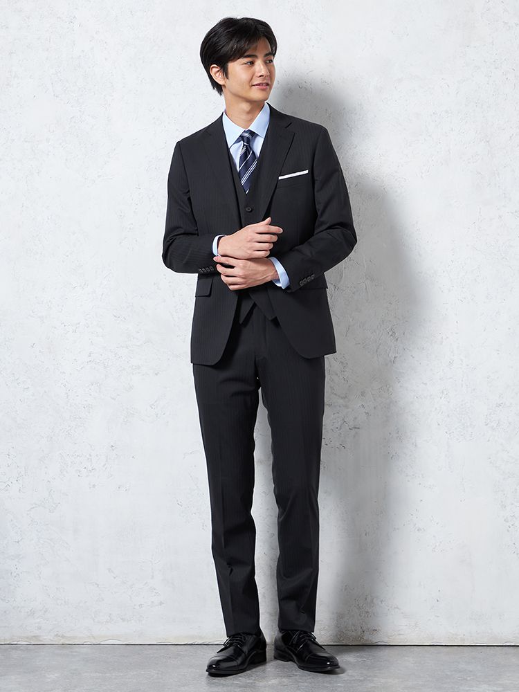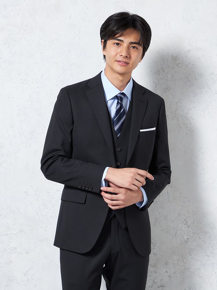 表地は2WAYストレッチ素材、裏地は滑らかなキュプラを使用したスリーピーススーツ。