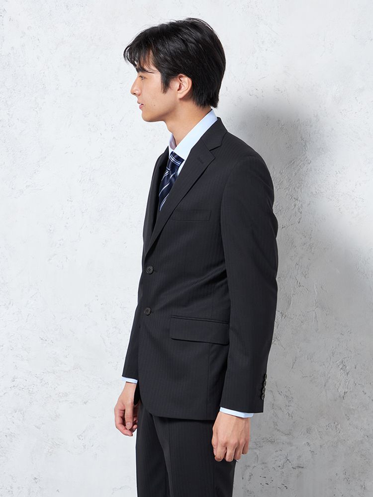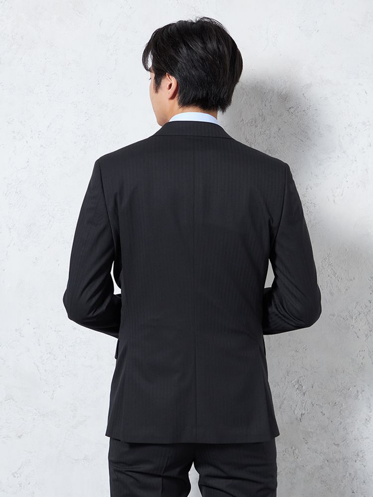 【上下ウォッシャブル】スーツ2つボタン軽量表地ストレッチ素材ワンタック織柄無地nero【i-Suit-アイスーツ-】春夏【スリムデザイン】