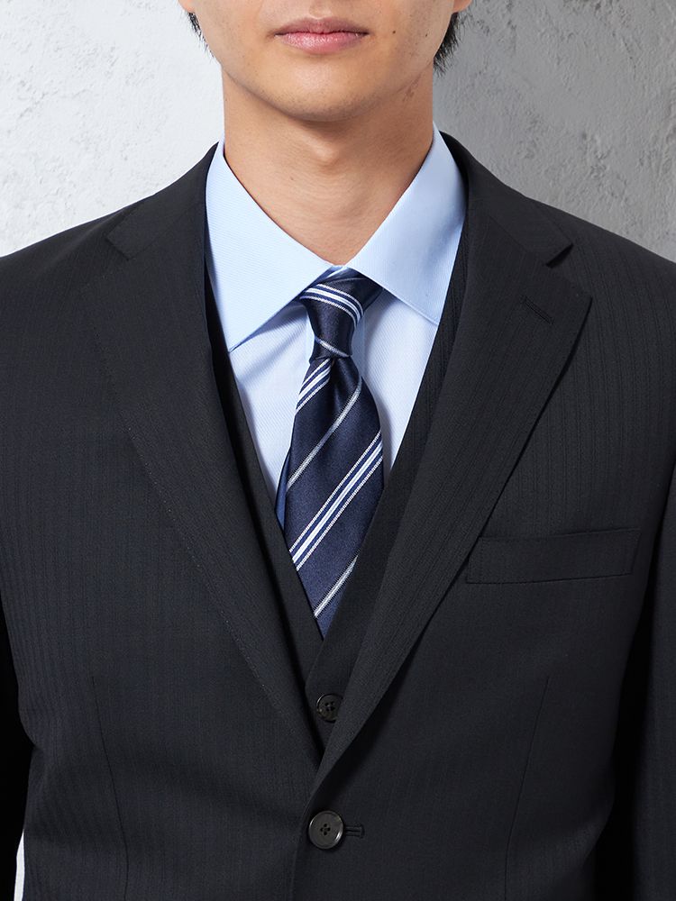 【即納】【WEB限定】スーツ2つボタンネイビーシャドウストライプ上下ウォッシャブル3シーズン対応