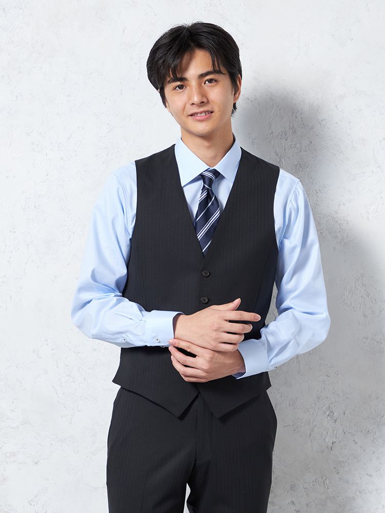 ジャケット、パンツ、ベストの3点セットで、スーツ全体を簡単にコーディネートできます。ビジネスやフォーマルな場面に最適です。