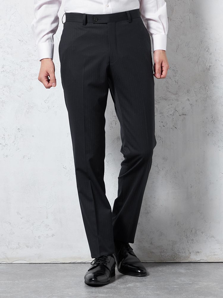 シャドーストライプのデザインやスリムシルエットがスタイリッシュな印象です。