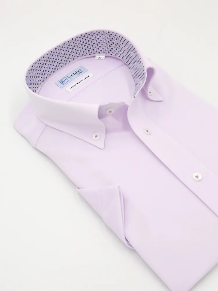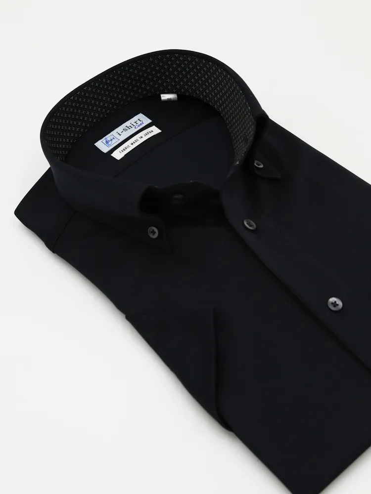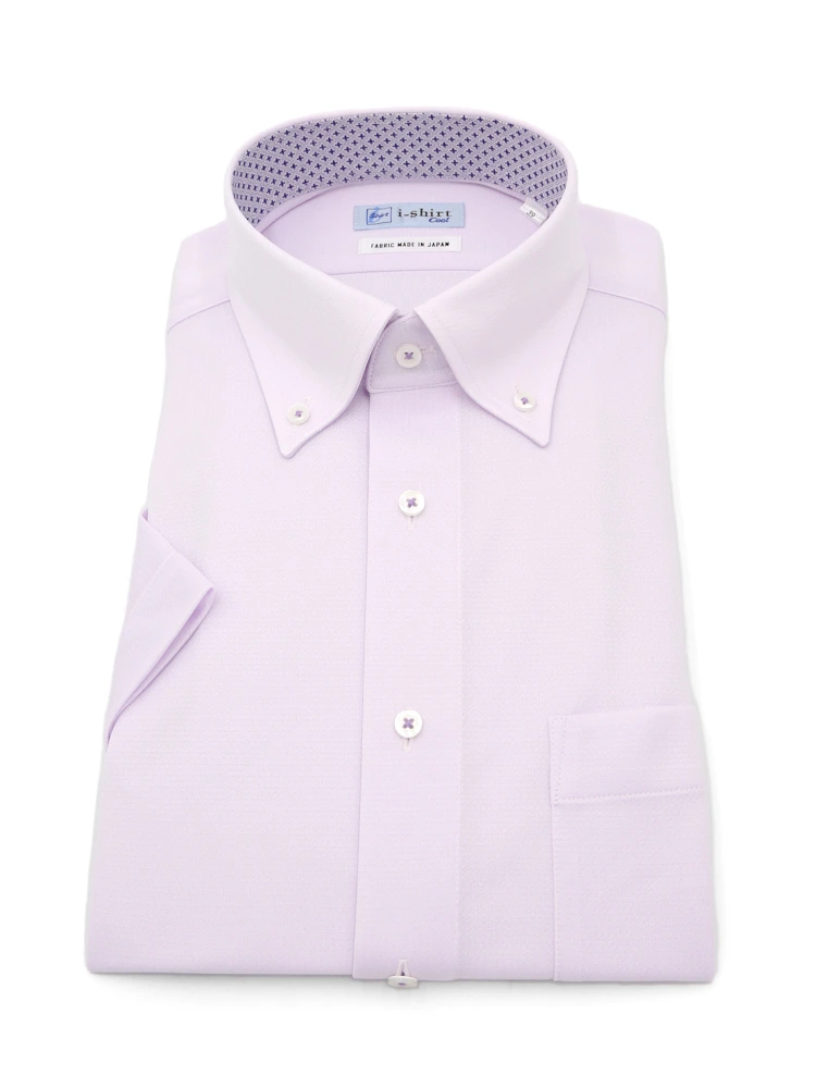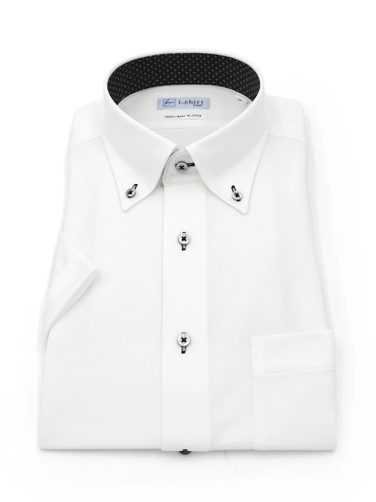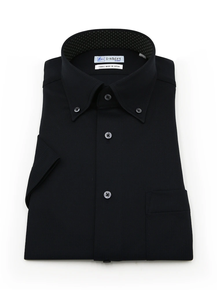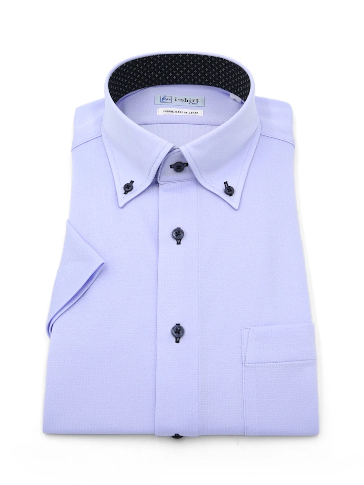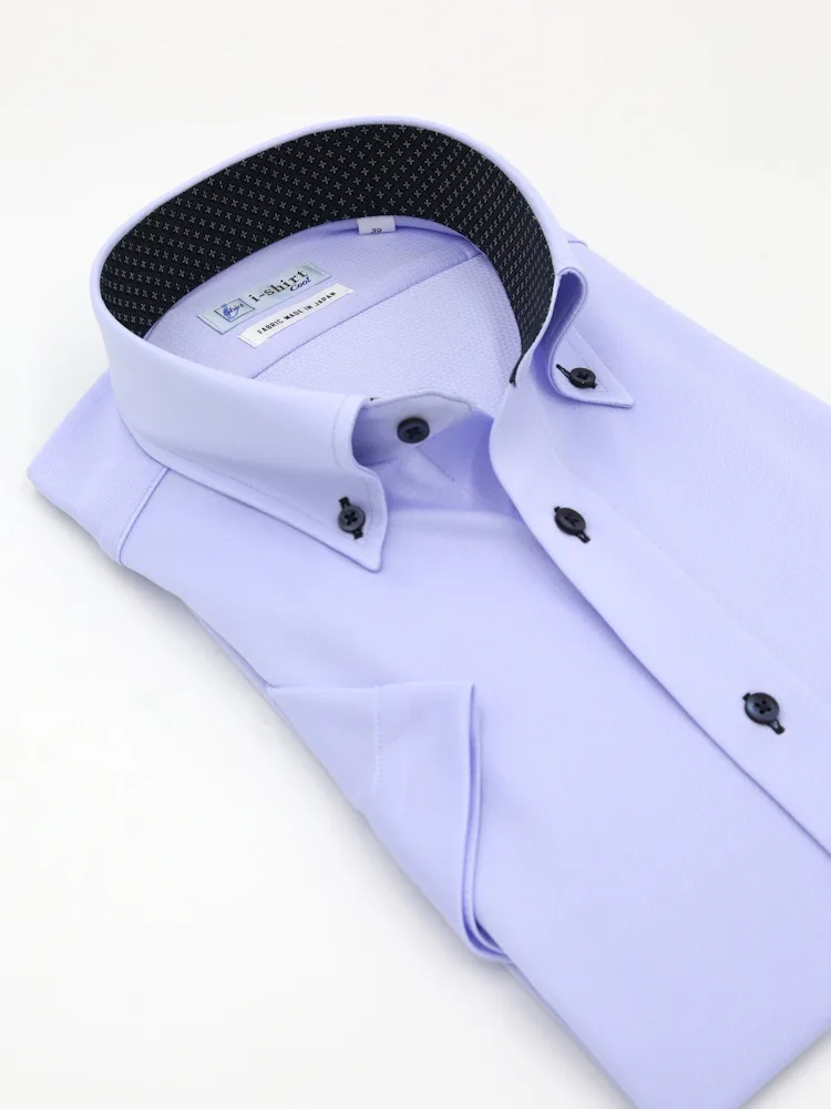【完全ノーアイロン】半袖アイシャツボタンダウン【DRYAIR生地使用】通気性織柄無地ワイシャツi-shirt春夏