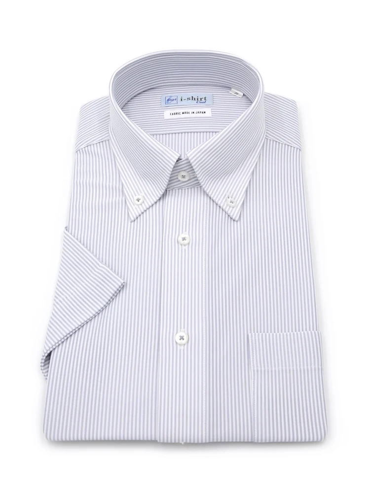 【完全ノーアイロン】半袖アイシャツボタンダウン【バイオセンサークール生地使用】吸湿冷感高通気ストライプワイシャツi-shirt春夏