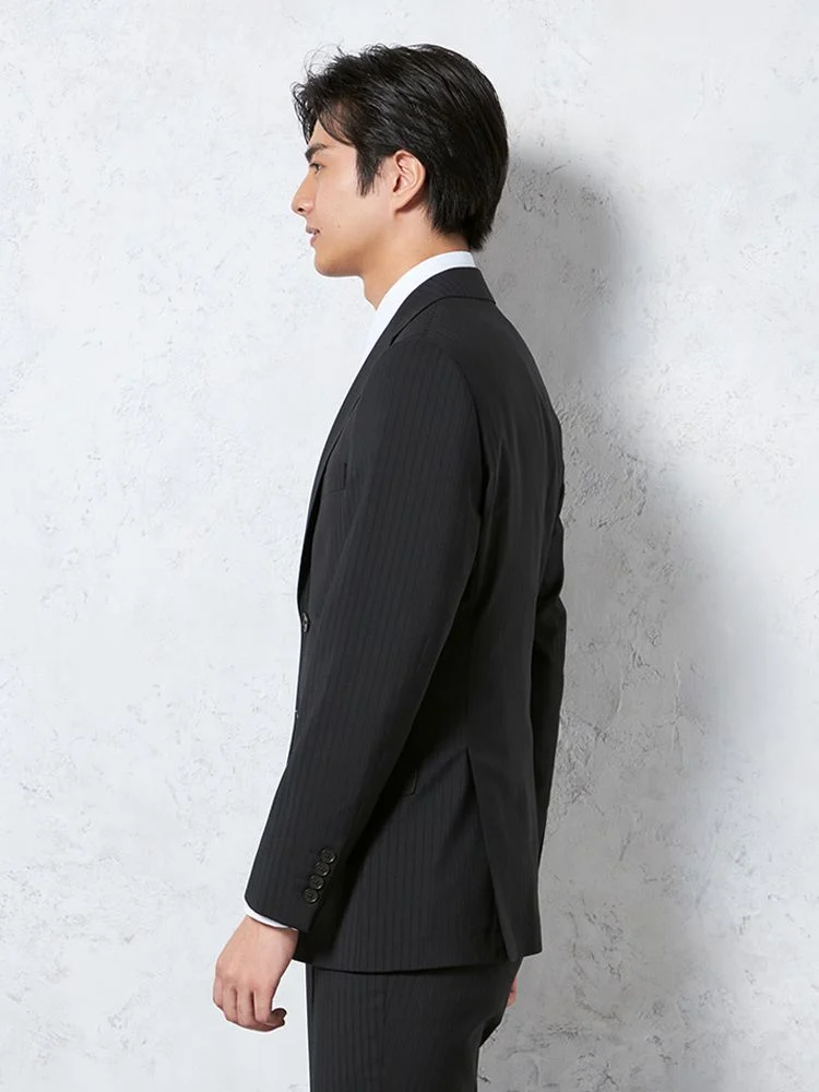 【上下ウォッシャブル】スーツ2つボタン軽量表地ストレッチ素材ワンタック織柄無地nero【i-Suit-アイスーツ-】春夏【スリムデザイン】