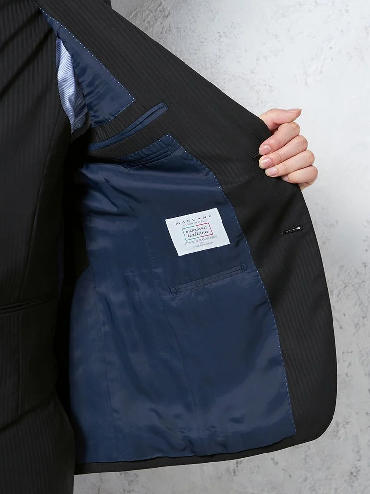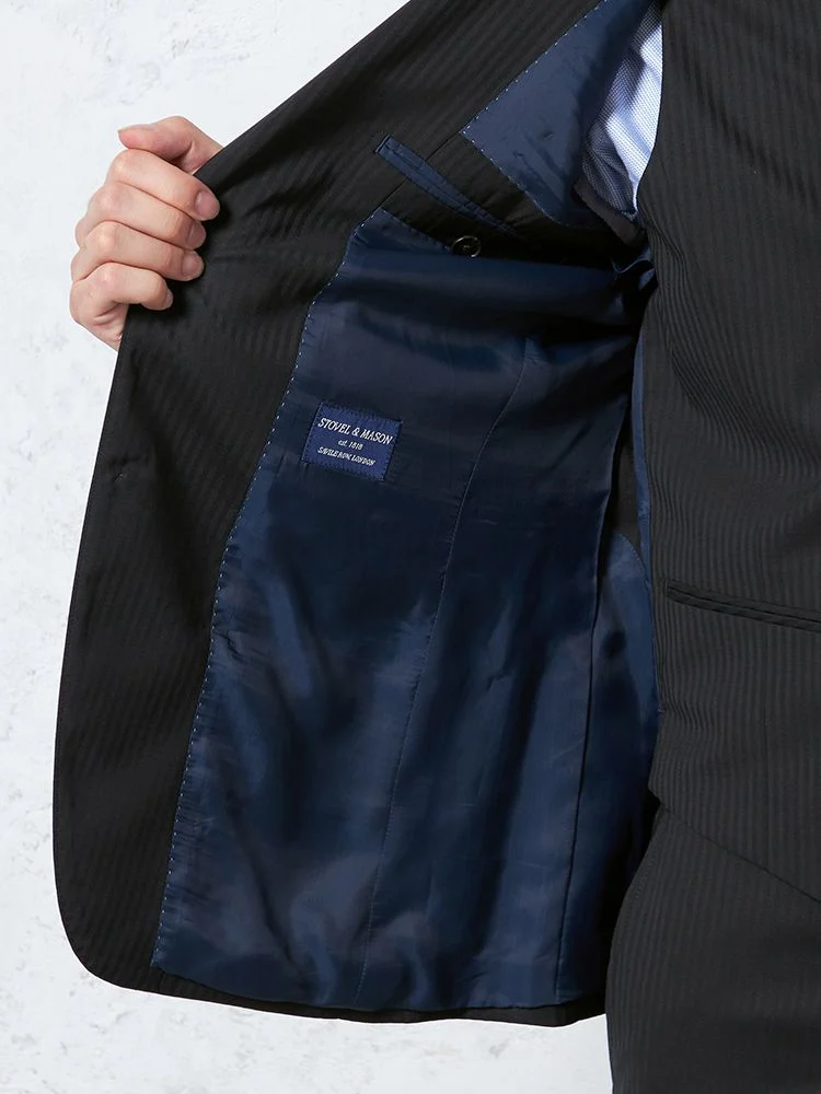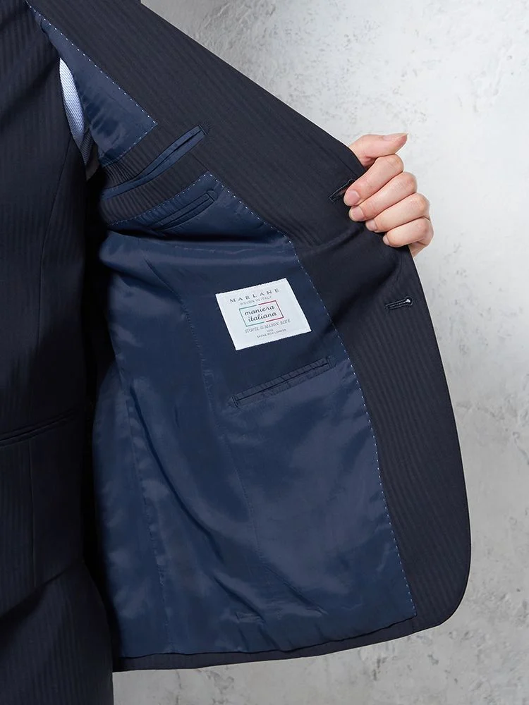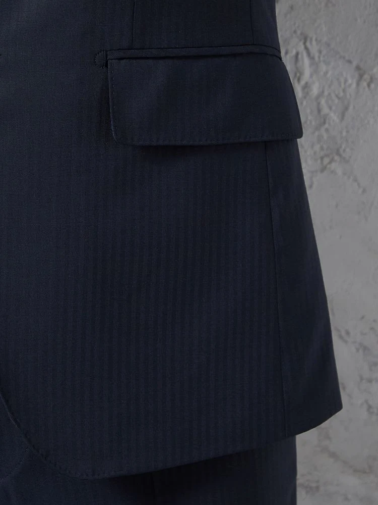 【ウール100%】スリーピーススーツ 2つボタン マルラーネ シャドウストライプ S&M BLUE LABEL(ネイビー)