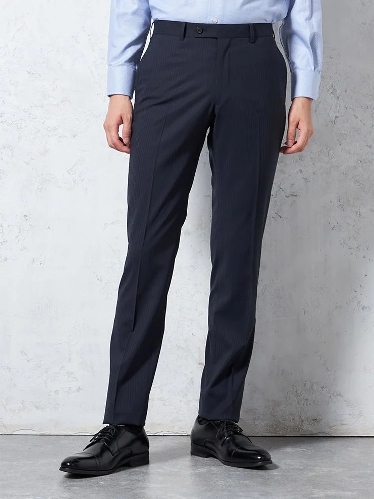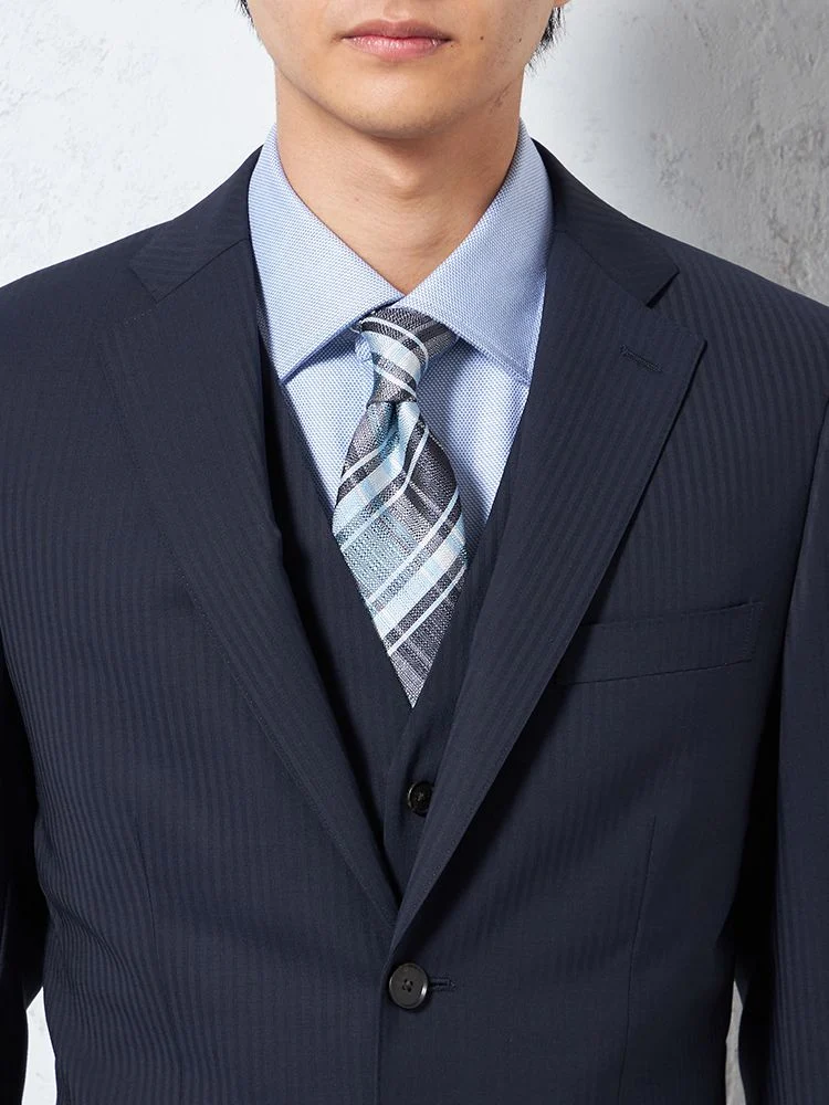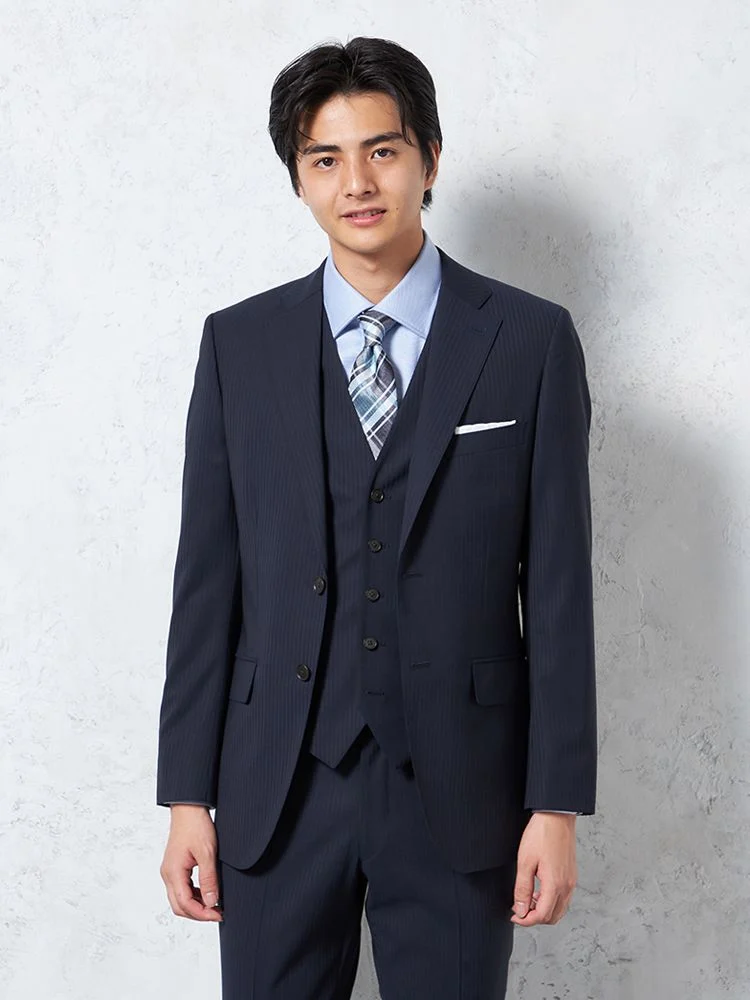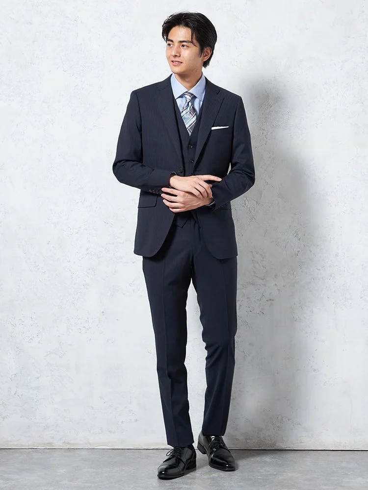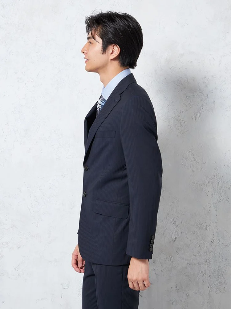 【即納】【WEB限定】スーツ2つボタンネイビーシャドウストライプ上下ウォッシャブル3シーズン対応