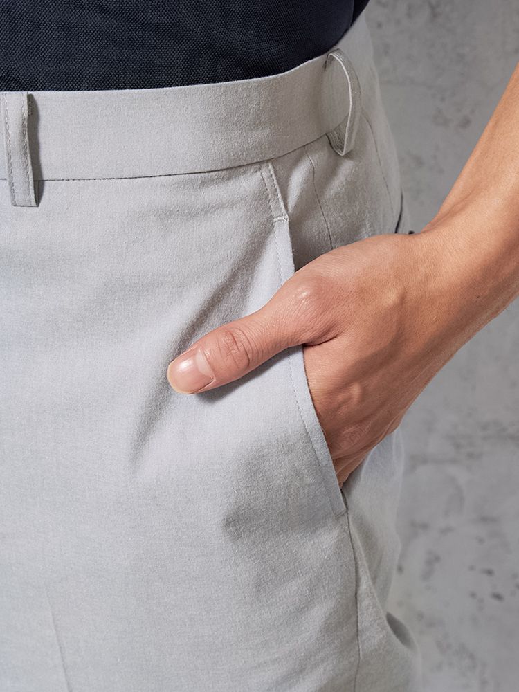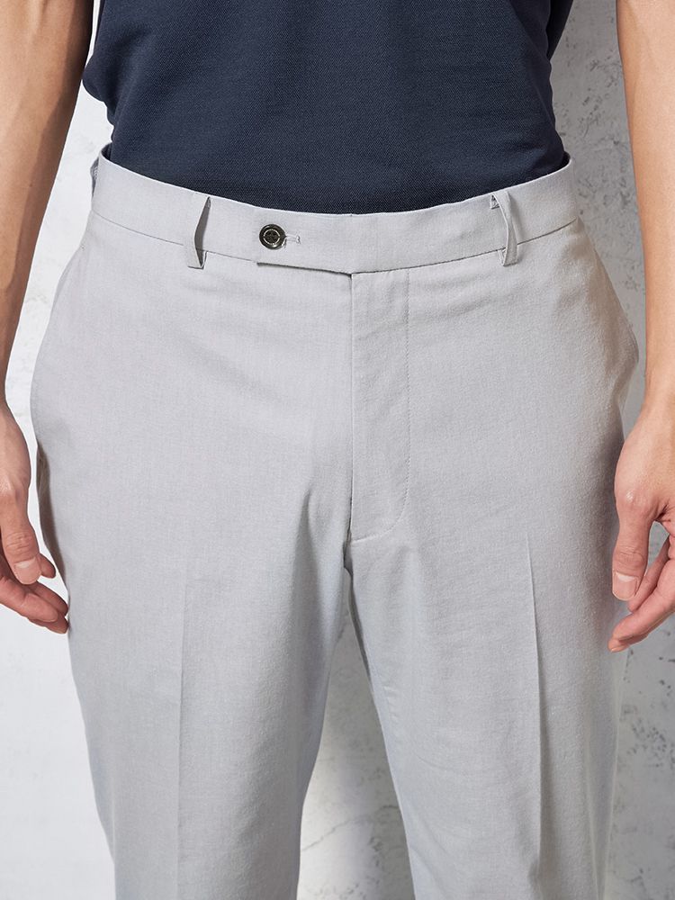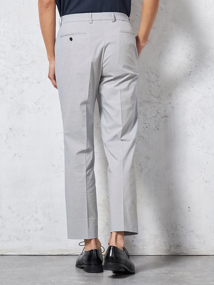 【KATHARINE E HAMNETT-キャサリン・イー・ハムネット-】スーパーストレッチパンツ チノパン ウォッシャブル ライトグレー無地