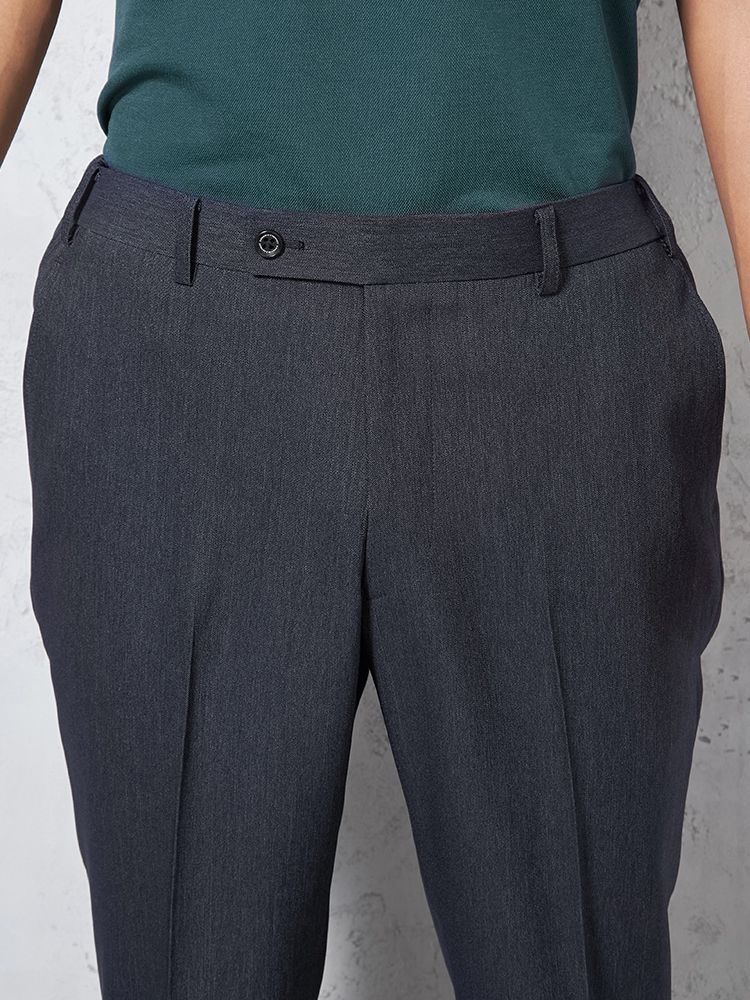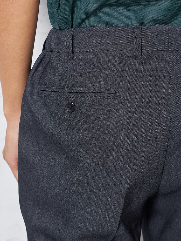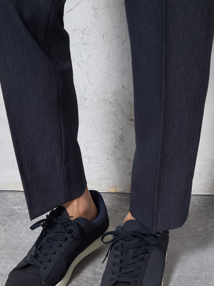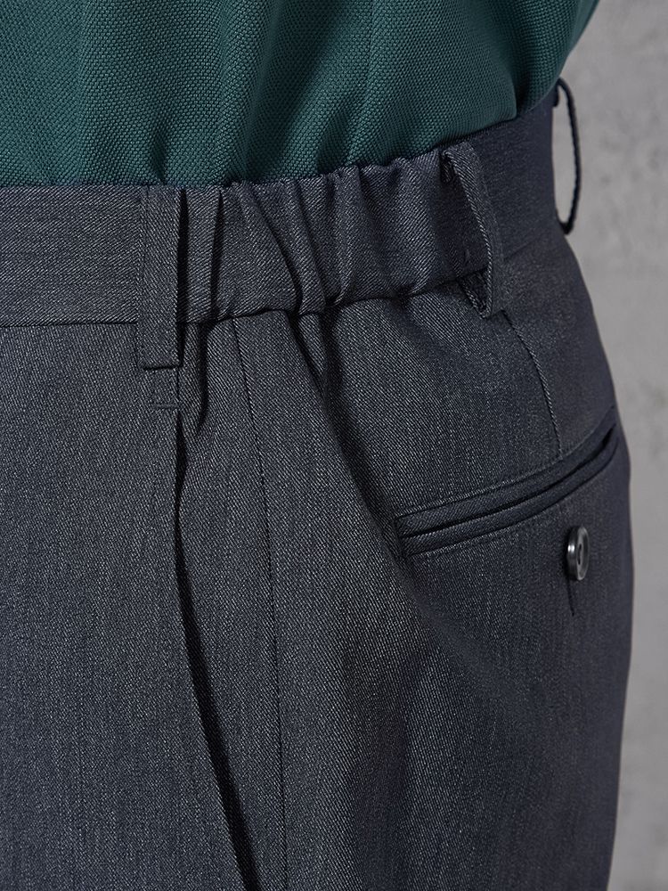 ノータックのすっきりとしたシルエット。ウエストの両サイドにはゴムが入り、フィット感も快適です。