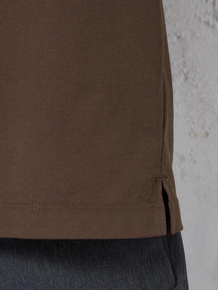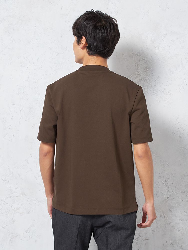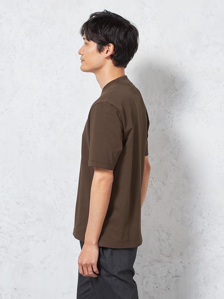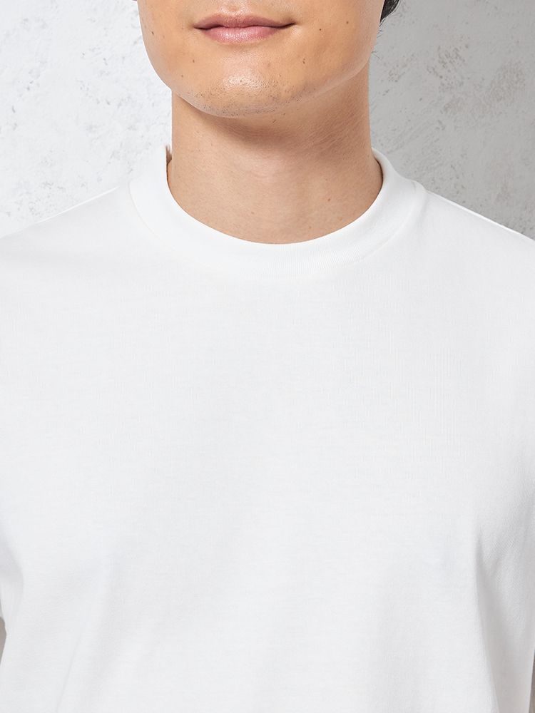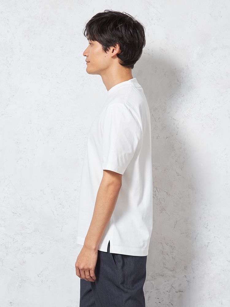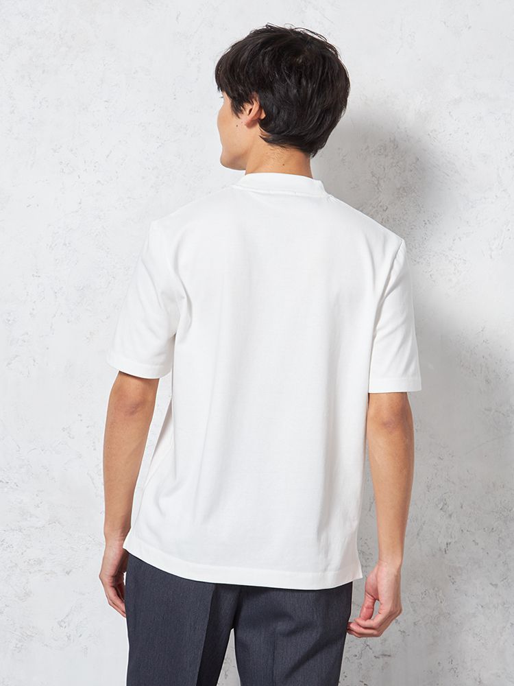 汗じみ防止加工と、後ろ衿高仕様でジャケットインナーとしても使い勝手抜群。