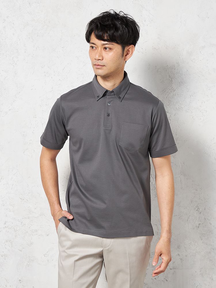 【KATHARINEEHAMNETT-キャサリン・イー・ハムネット-】半袖ポロシャツビズポロボタンダウン無地春夏