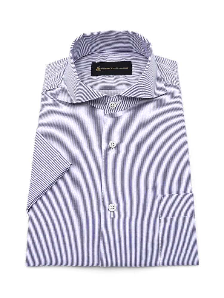 【形態安定】半袖ワイシャツボタンダウン別布ストライプビバリーヒルズポロクラブ春夏