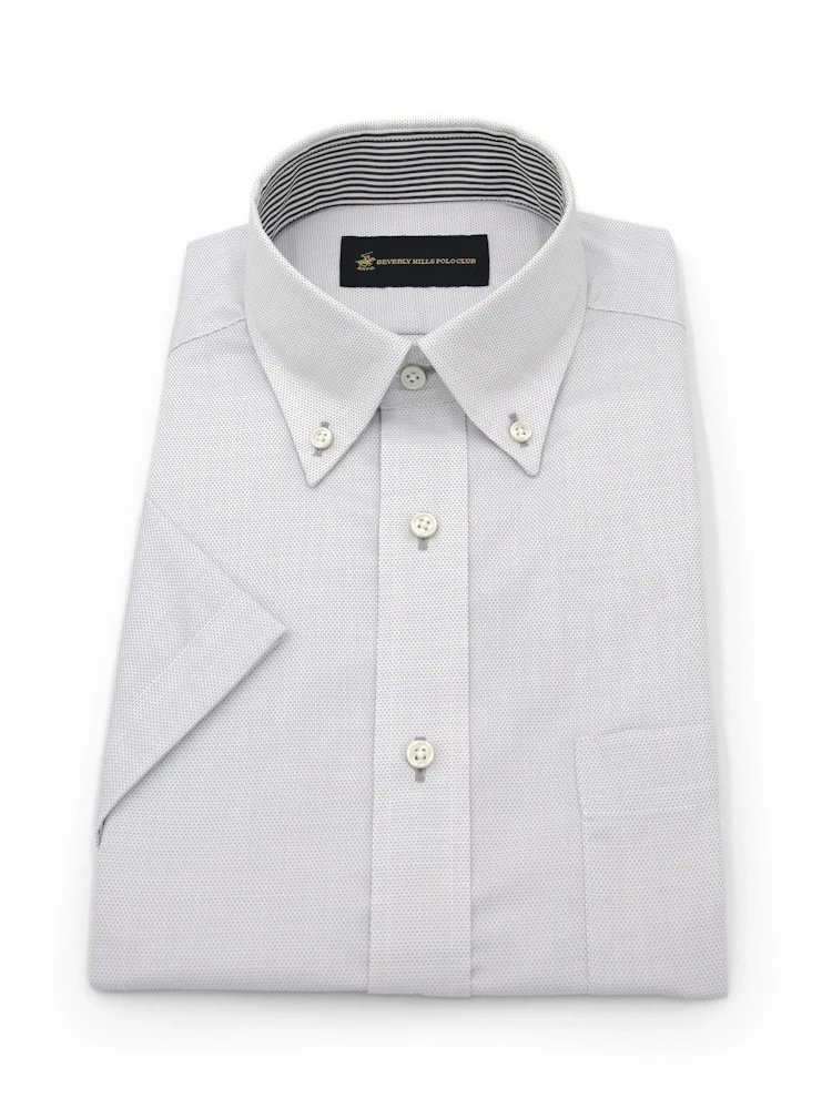 【形態安定】半袖ワイシャツ ボタンダウン 別布 グレードビー 織柄無地 ビバリーヒルズポロクラブ 春夏