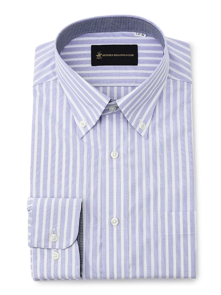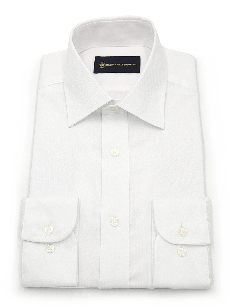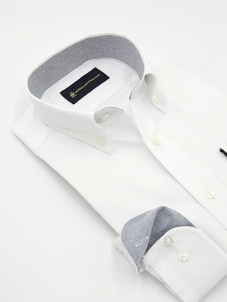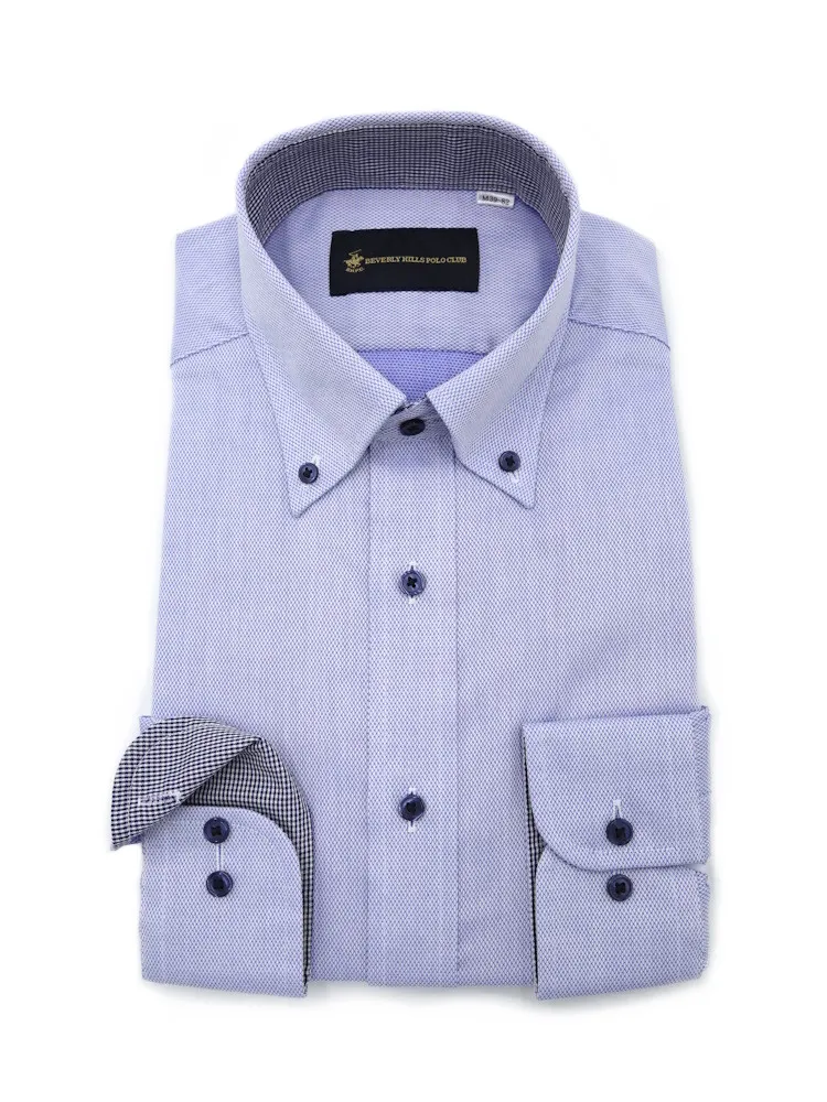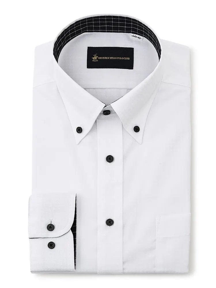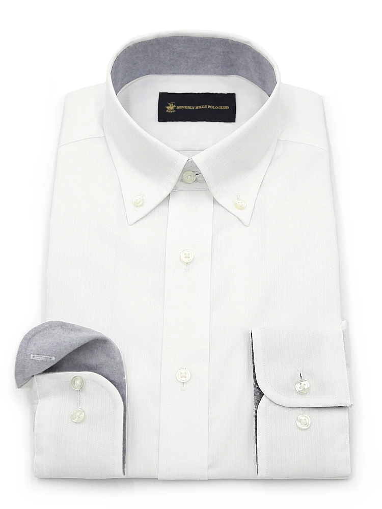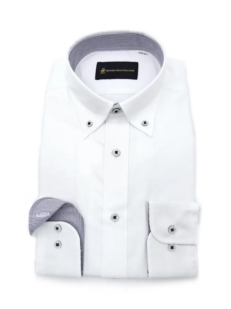 • 【形態安定】長袖ワイシャツ ボタンダウン 別布 白ドビー 織柄無地 ビバリーヒルズポロクラブ 通年 1549704197