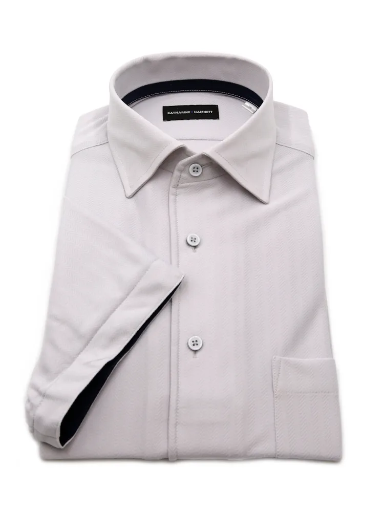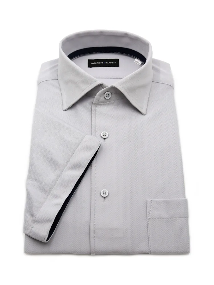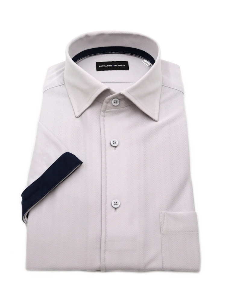 【KATHARINE E HAMNETT-キャサリン・イー・ハムネット-】半袖 ワイシャツ ワンピースカラー セミワイド 360°ストレッチ 吸水速乾 へリンボン 通年(C.グレー)