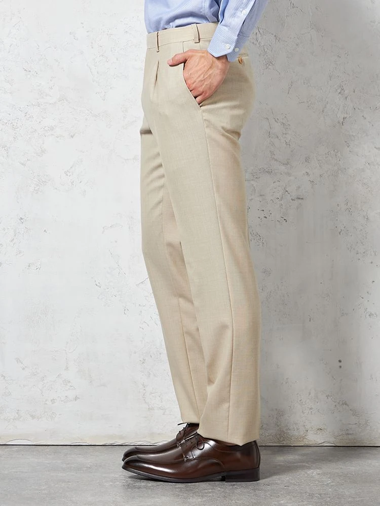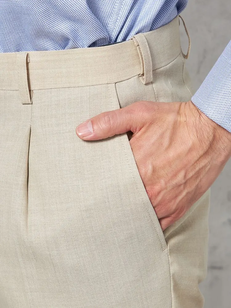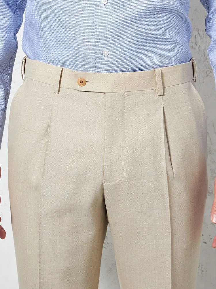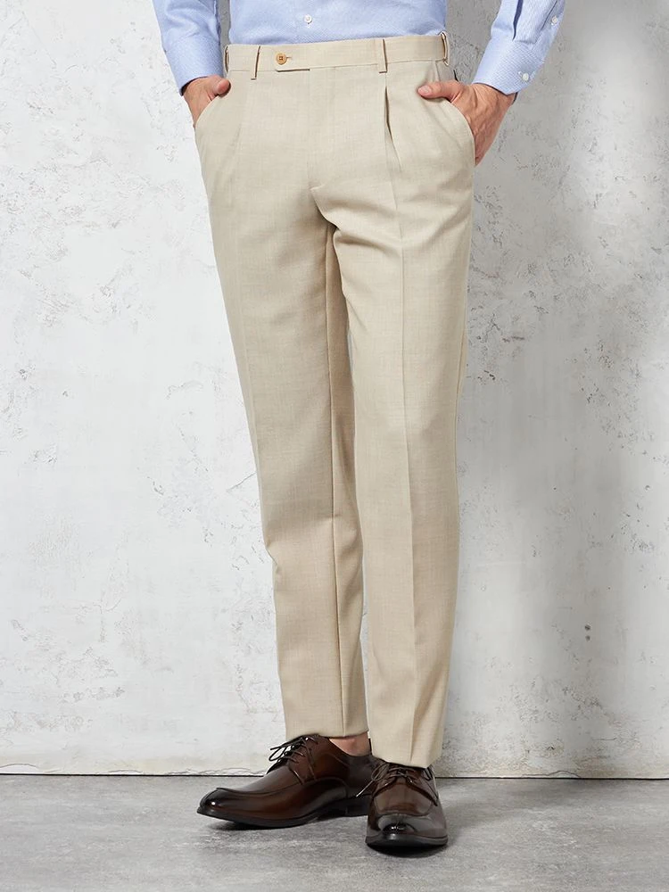【ウール100%】パンツ ワンタック イタリア マルラーネ社製生地 ベージュ 無地 RUCKEN BACCHAR