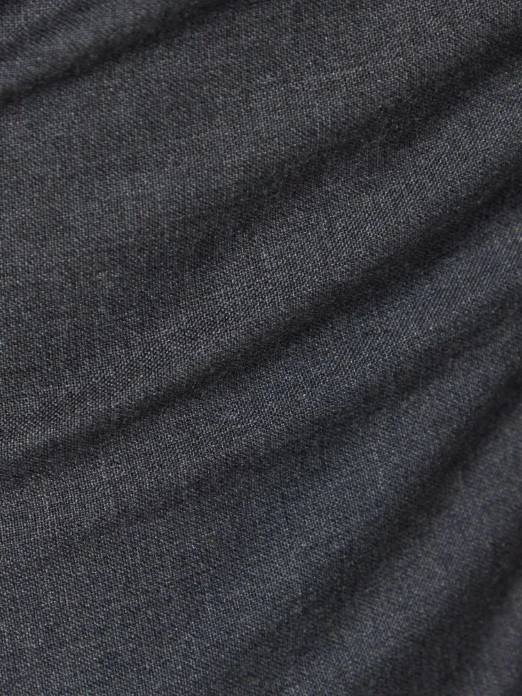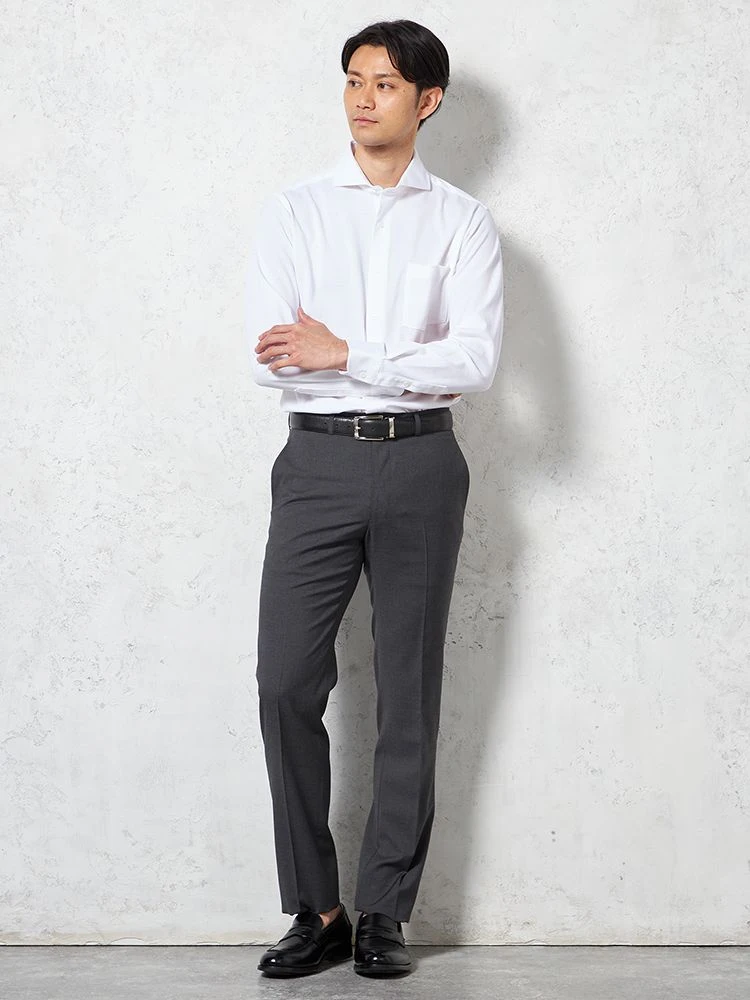 パンツの腰回りに生地の折り込みがなく、スッキリとしたシルエットを実現します。シンプルで洗練された印象を与え、すっきりとした着こなしが可能です。