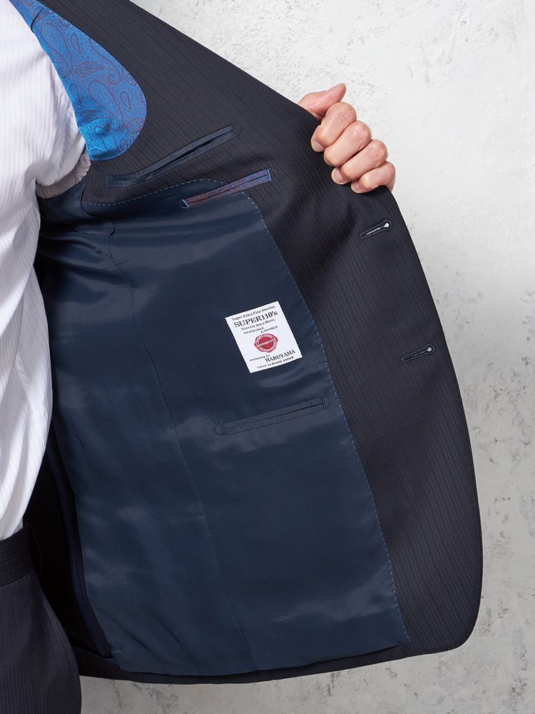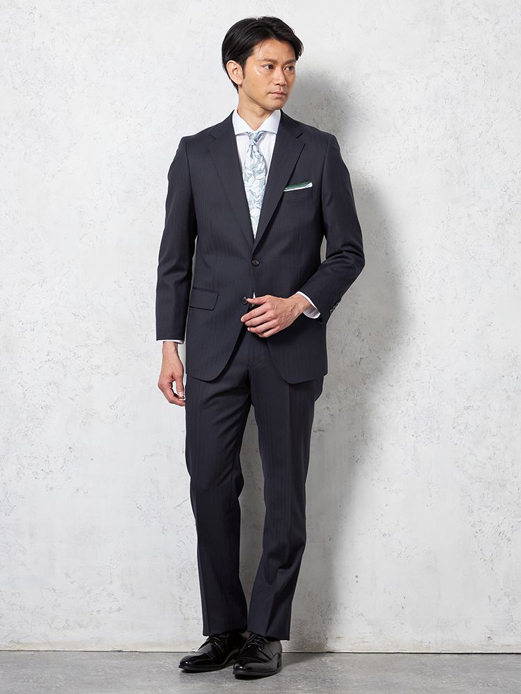 【ウール100%】スーツ 2つボタン 尾州生地 ネイビー シャドウストライプ STOVEL&MASON
