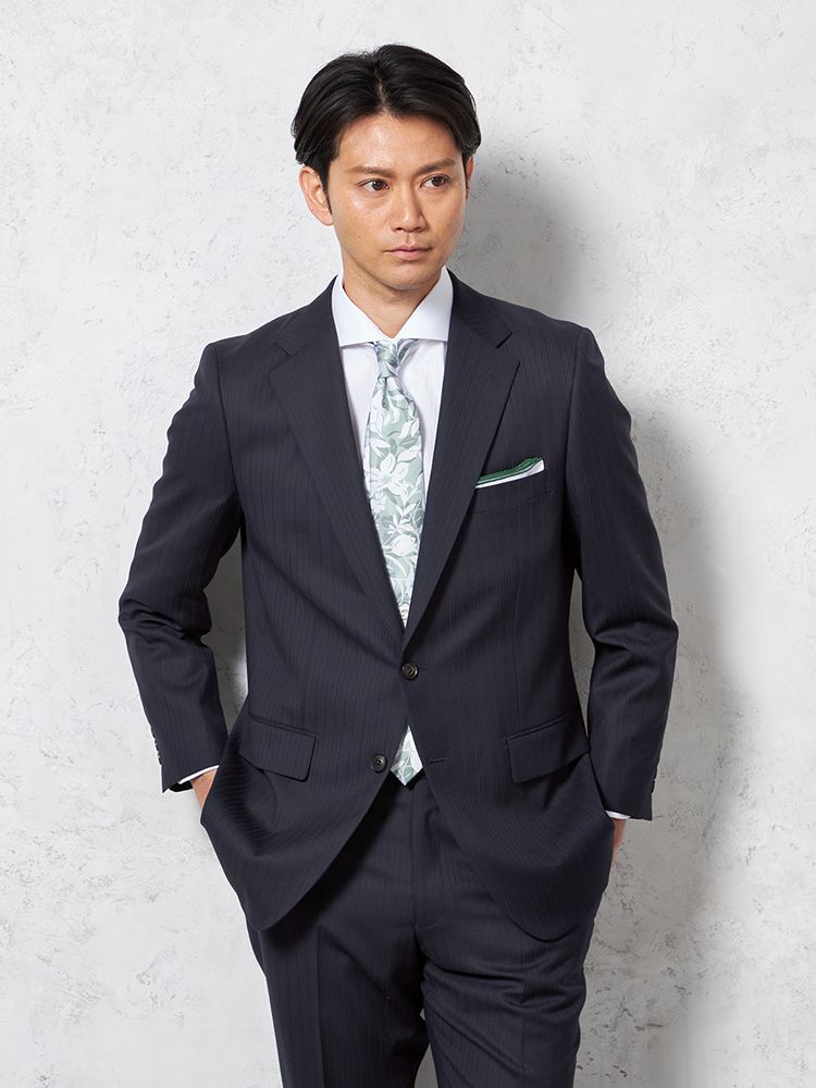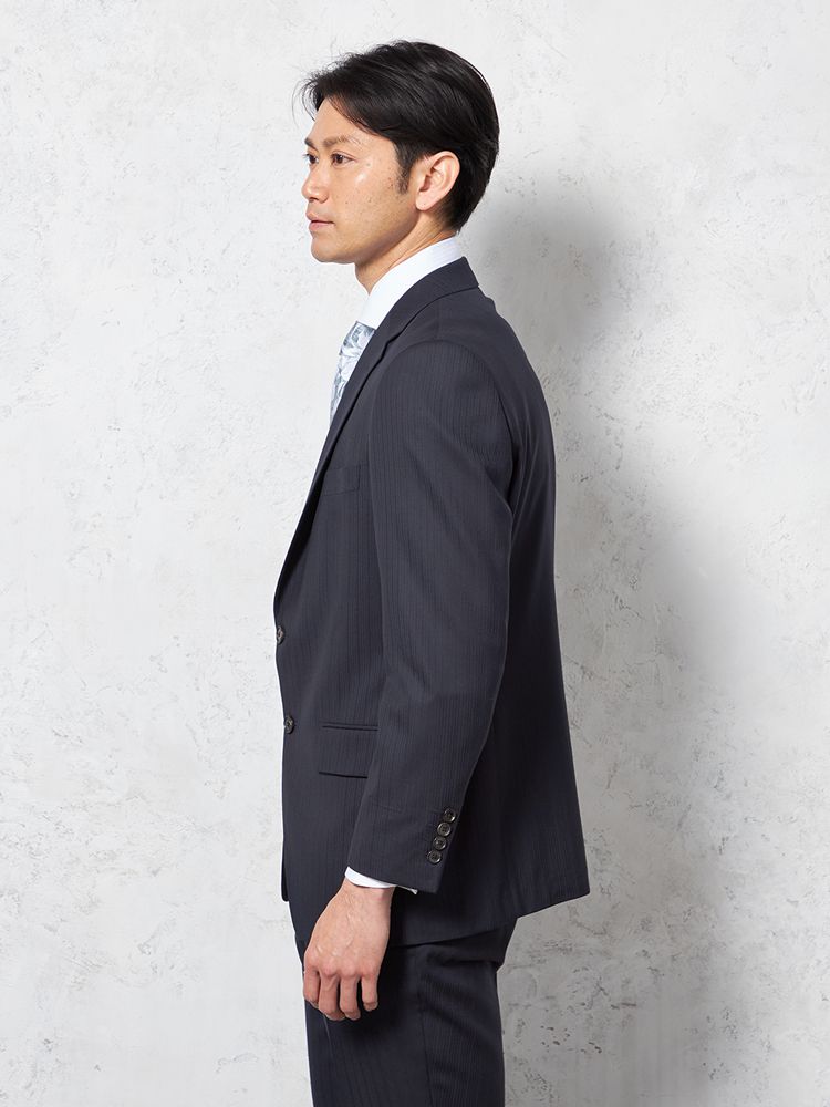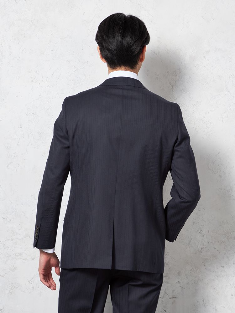 【即納】【WEB限定】スーツ2つボタンネイビーシャドウストライプ上下ウォッシャブル3シーズン対応
