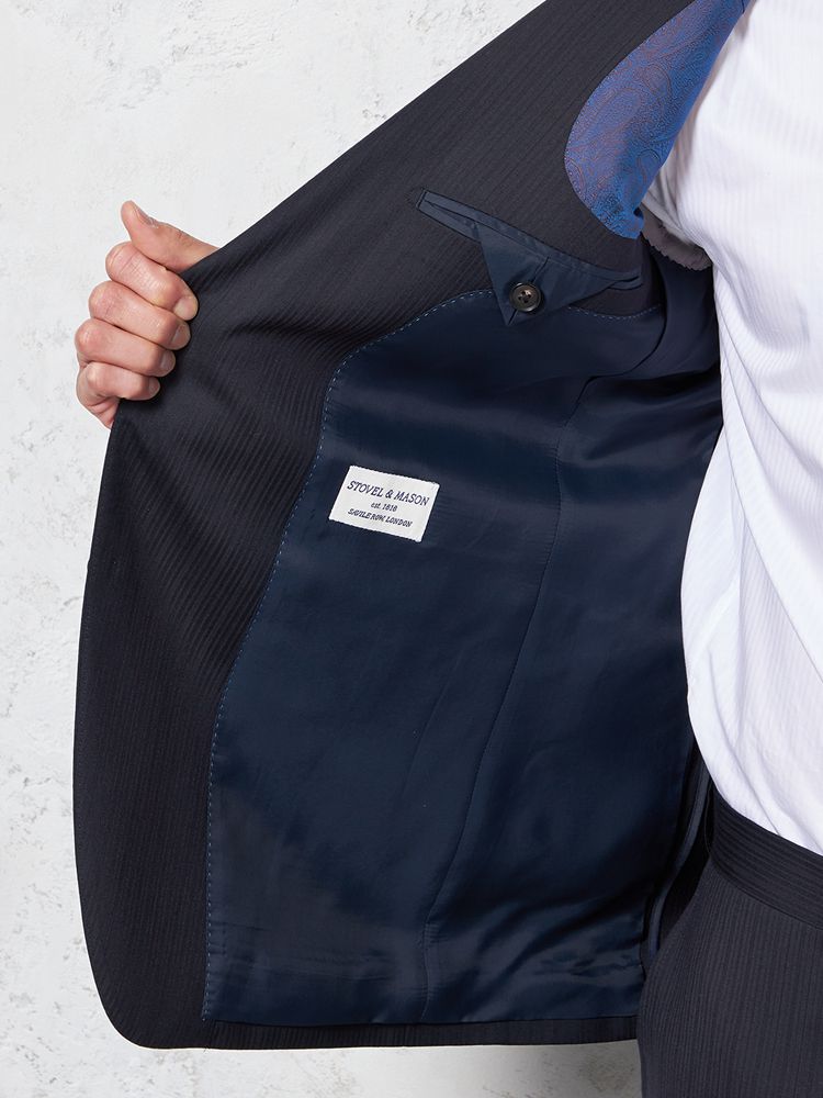 【ウール100%】スーツ2つボタン英国製素材【JOHNFOSTER】ネイビーシャドウストライプSTOVEL&MASON