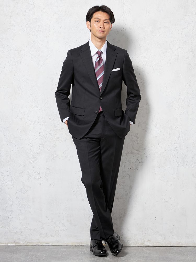 【即納】【WEB限定】スーツ2つボタンネイビーシャドウストライプ上下ウォッシャブル3シーズン対応