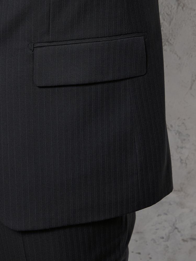 【ウール混】スーツ 2つボタン 尾州生地 ブラック ストライプ STOVEL&MASON